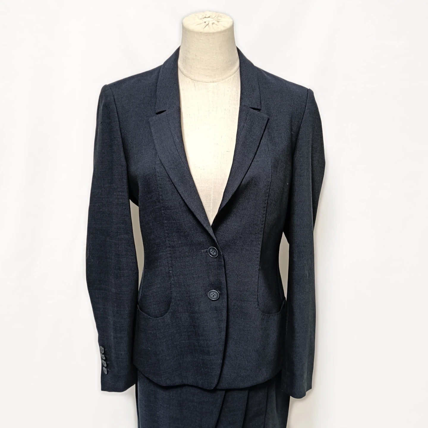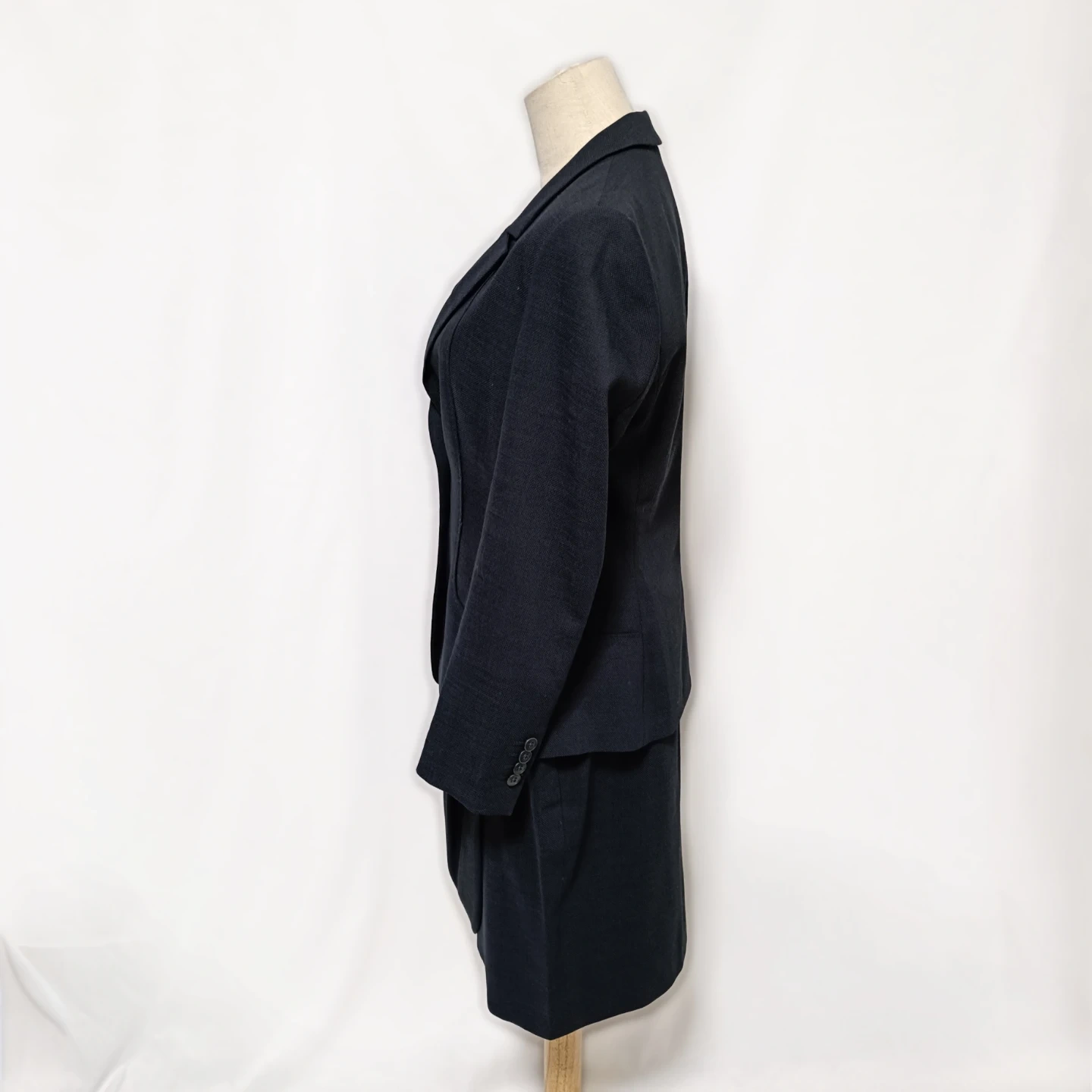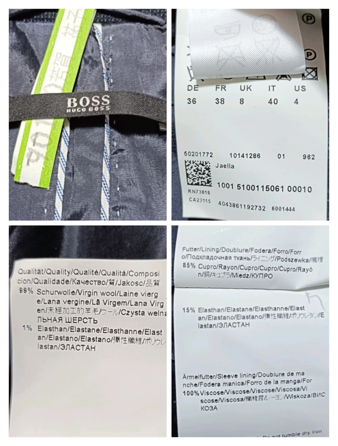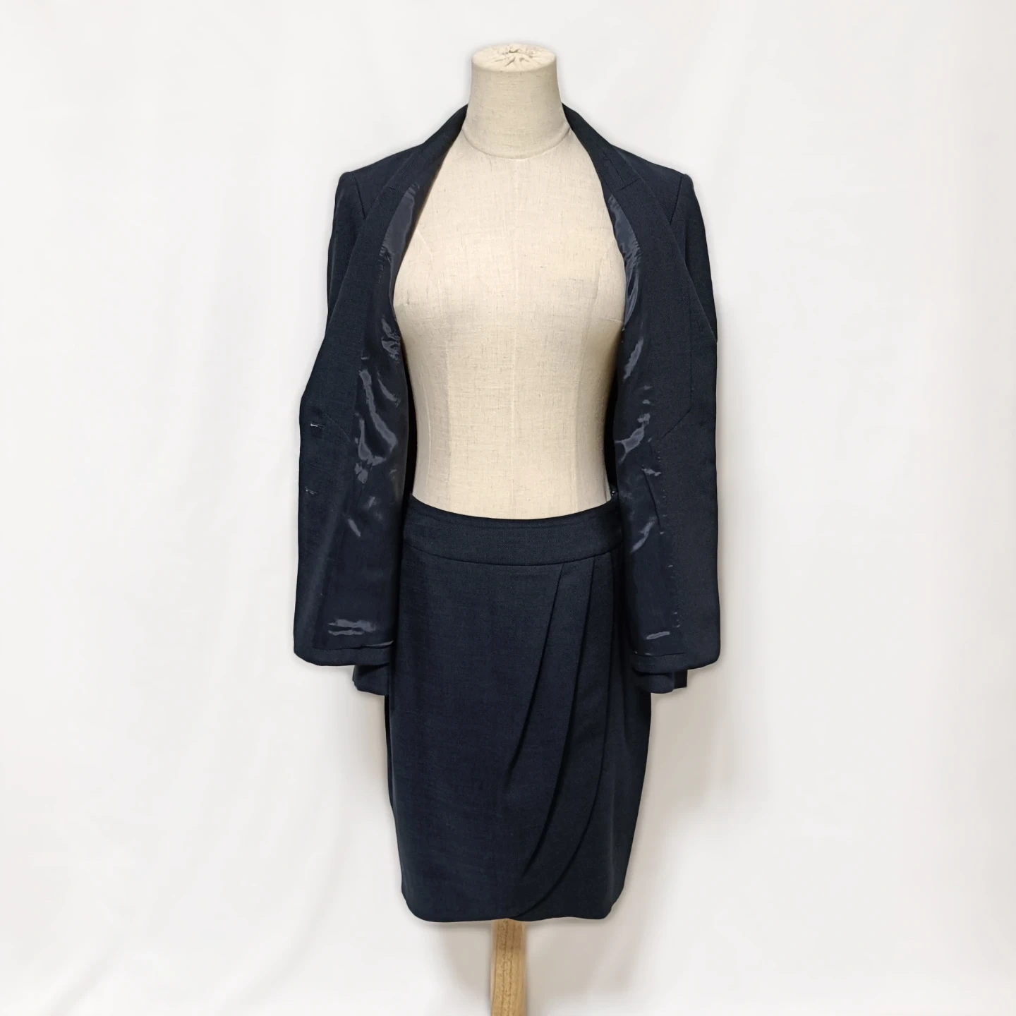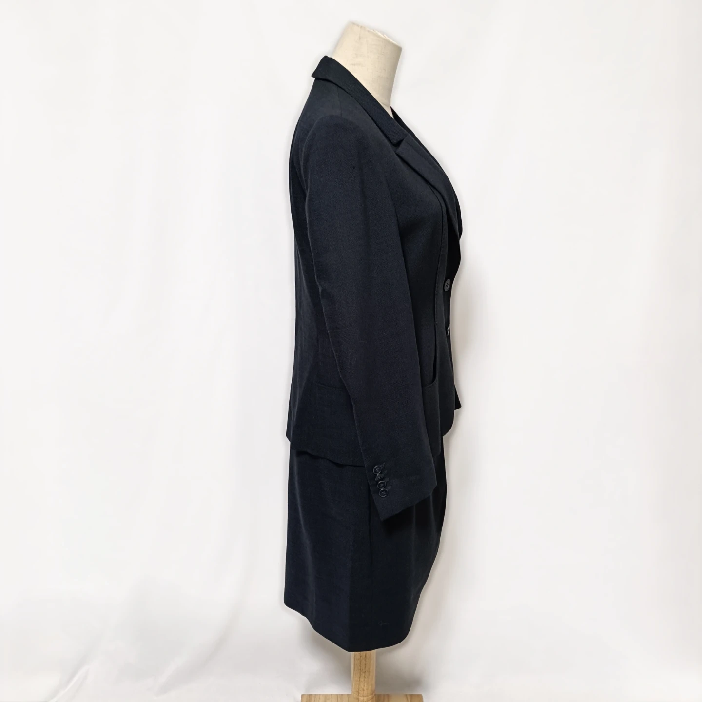 ご覧いただきありがとうございます! 世界的なラグジュアリーブランド**HUGO BOSS(ヒューゴボス)**のスカートスーツセットアップです。 非常に上質なバージンウールを贅沢に使用しており、しなやかで上品な光沢感が特徴。1%のエラスタン(ストレッチ素材)が含まれているため、体に馴染みやすく、動きやすさも兼ね備えた最高の一着です。 ビジネスシーン、冠婚葬祭、お受験、卒業式・入学式などのセレモニーまで、幅広く活躍します。 □商品名□ 高級 HUGO BOSS ヒューゴボス スカートスーツ セットアップ 濃紺 36 □ブランド□ HUGO BOSS ヒューゴボス □表記サイズ□ 表記 36 / US 4 日本サイズでS〜M相当 □実寸サイズ(cm) □ 【床置きサイズ】 ジャケット 着丈:60 肩幅:40 身幅︰44 袖丈:60 スカート ウエスト︰36 着丈︰56 ※実寸につきまして多少の誤差はご了承ください。 ※表記サイズだけではなく実寸のサイズをご確認ください。 □カラー□ ダークネイビー(濃紺) □素材□ 表地:バージンウール 99% エラスタン 1% 裏地:キュプラ 85%、エラスタン 15% 袖裏:ビスコース 100% □コンディション□ 目立った汚れやダメージなど特にございません。 ※汚れはできる限り写真にて掲載しております。まずは画像をご確認ください。 どうぞよろしくお願い致します。 □商品管理番号□ X3-W-5637