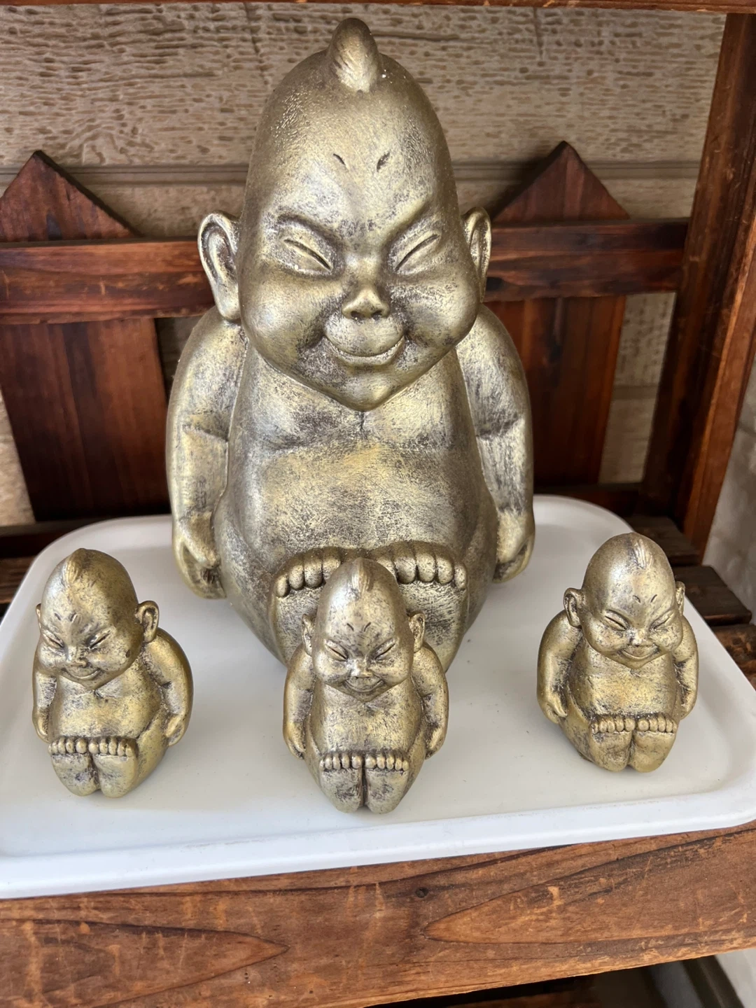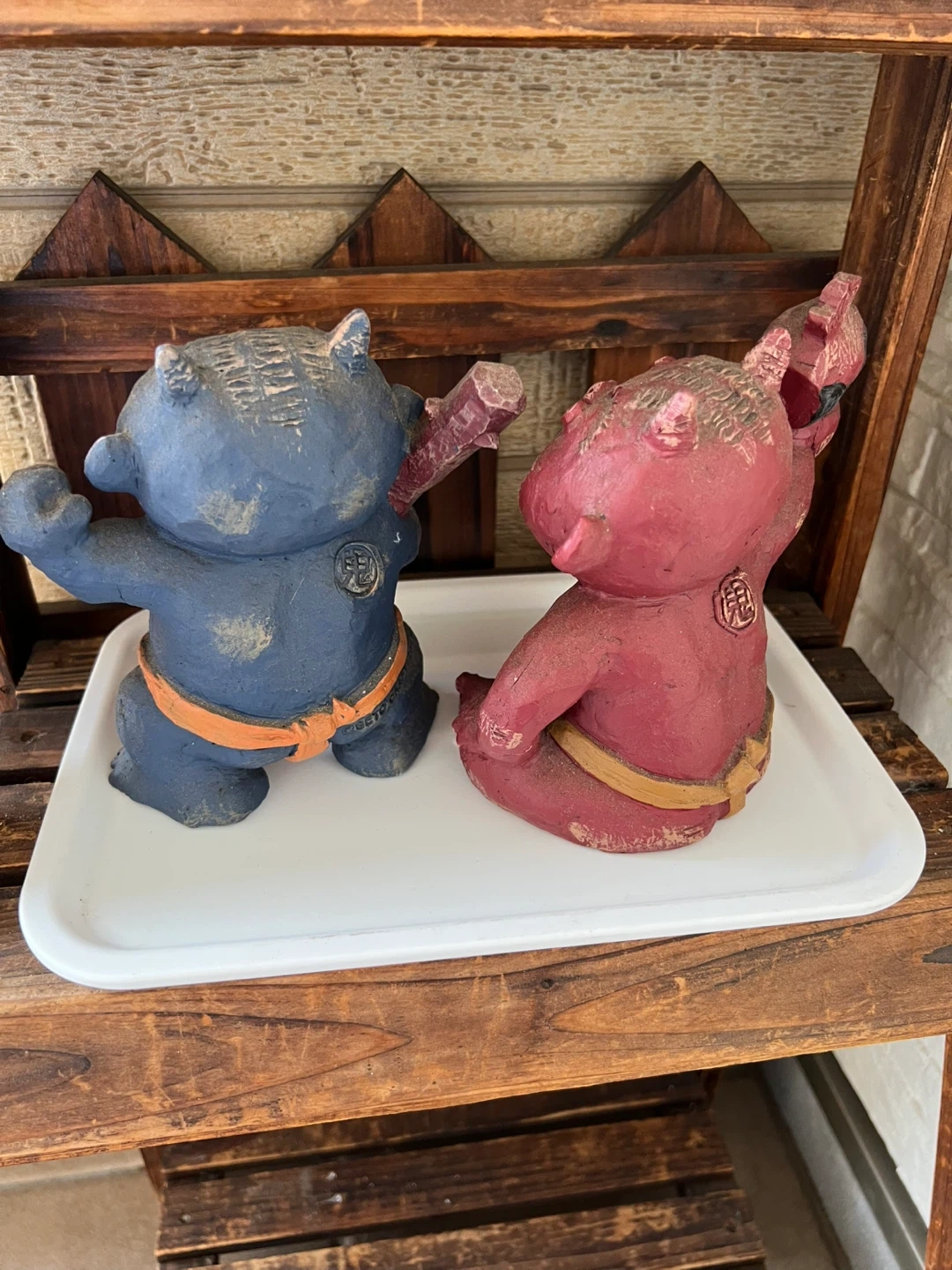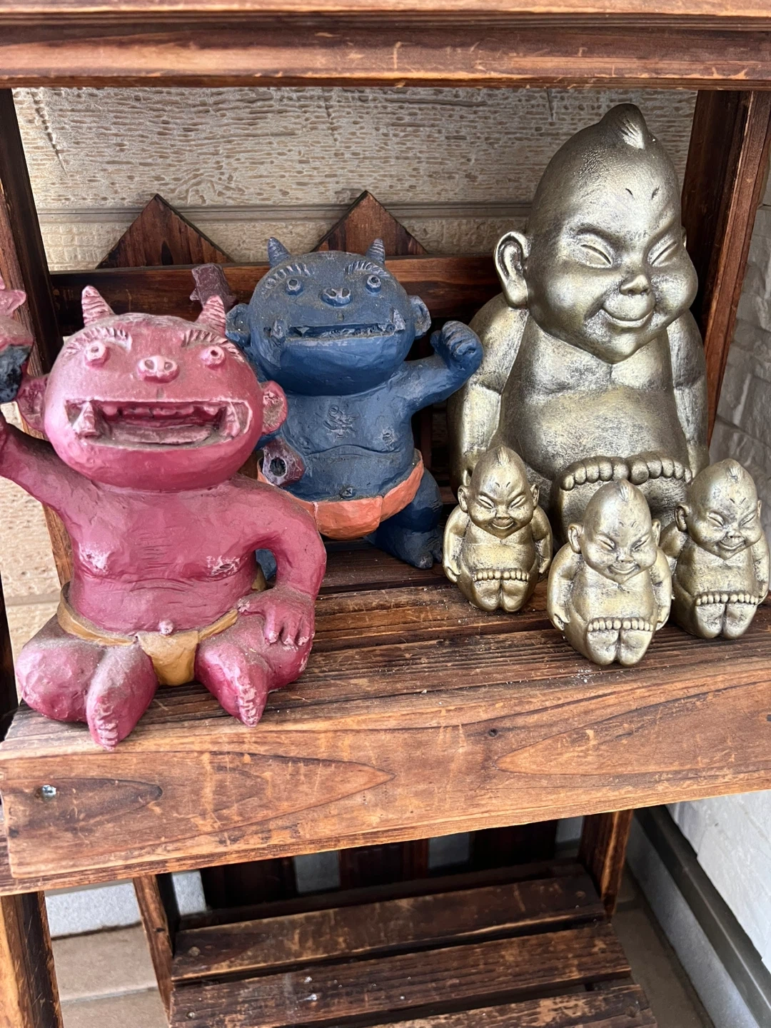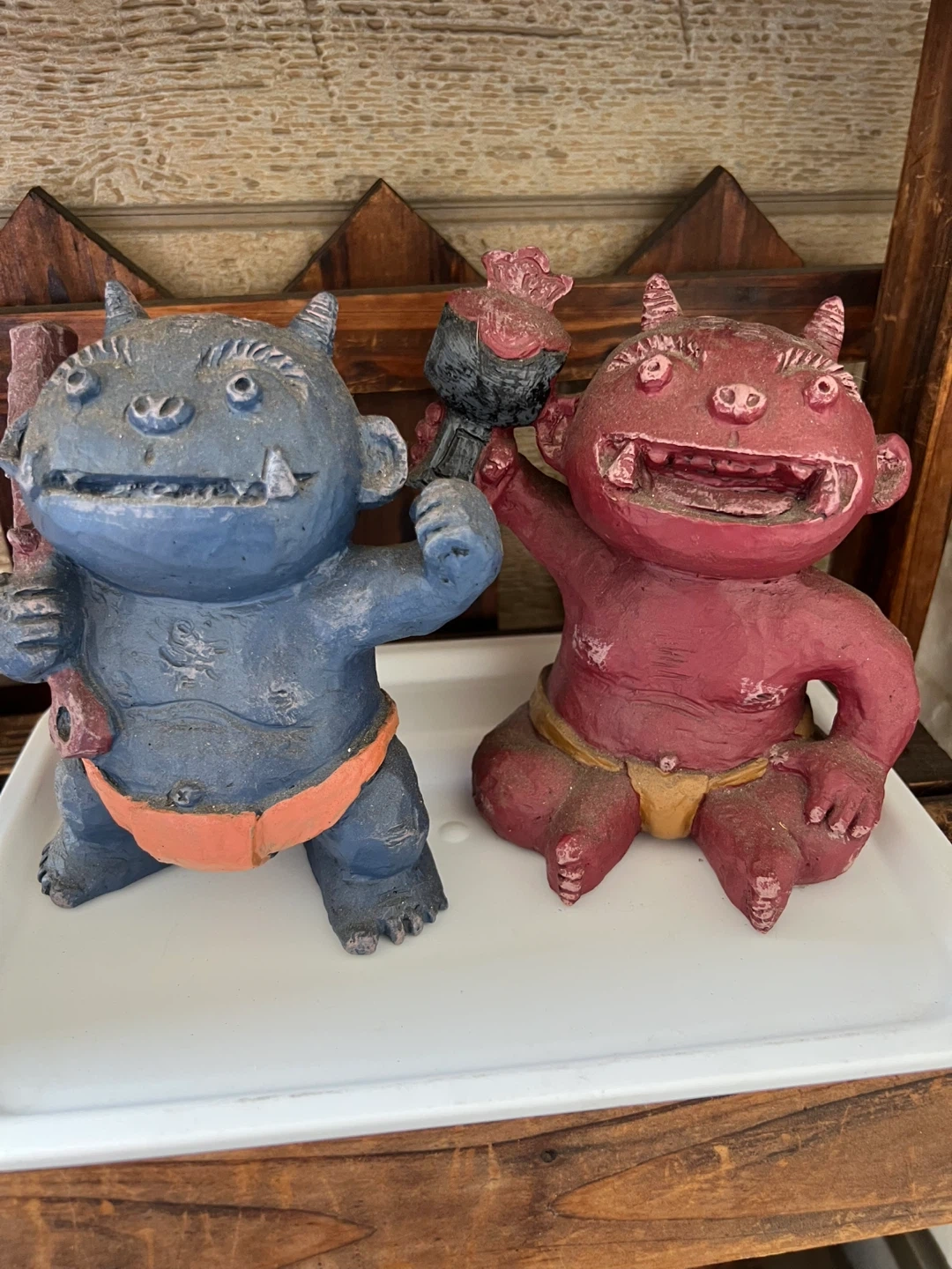 鬼の置物、ビリケンさんの置物です。 赤鬼1個、青鬼1個 ビリケンさん大1個、ビリケンさん少3個 合計6個です。 玄関等の置物インテリアとしていかがですか? 中古品の為キズや汚れ等あります。 ご了承の上宜しくお願い致します。 自宅まで引き取りに来れる方宜しくお願い致します。 引き取り後はノークレーム、ノーリターンです宜しくお願い致します。 中古品であることご了承ください
