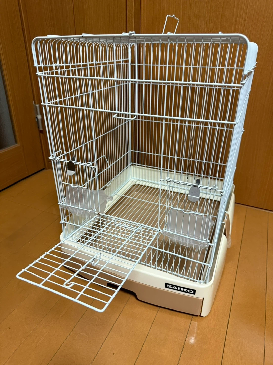 諸事情により再投稿です。(値下げもしました) 飼っているオカメインコのケージを買い替えたため、以前のものが不要になりました。どなたかにお譲りします。 正面から見て右側のエサ入れの金具がゆるくなっていて取れやすいですが 鳥かごとしてはまだ使えます。 パーチ(止まり木)は汚れが落ちにくかったため、付けていません。 鳥さんのためにも新しいものを使われる事を推奨します。 写真に写っている蓋付きのエサ入れはお付けします。 念入りに掃除済みです。 受け渡し場所はご相談させて下さい。