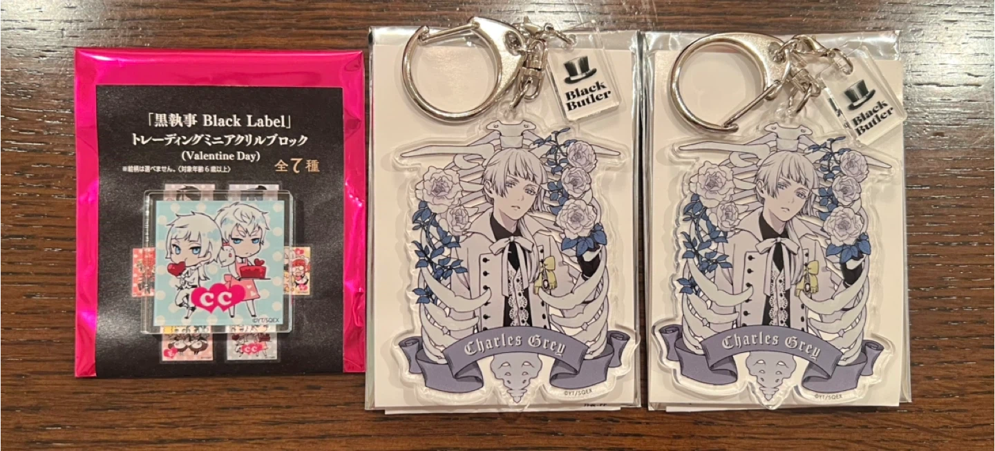 黒執事 Black Label Memorial Arcade アクリルキーホルダー アクキー Rich Black Bone & Flower チャールズ・グレイ ×2 ミニアクリルブロ ック Valentine Day チャールズ・グレイ & チャールズ・フィップス *中身を確認したため開封済みですが、未使用です。