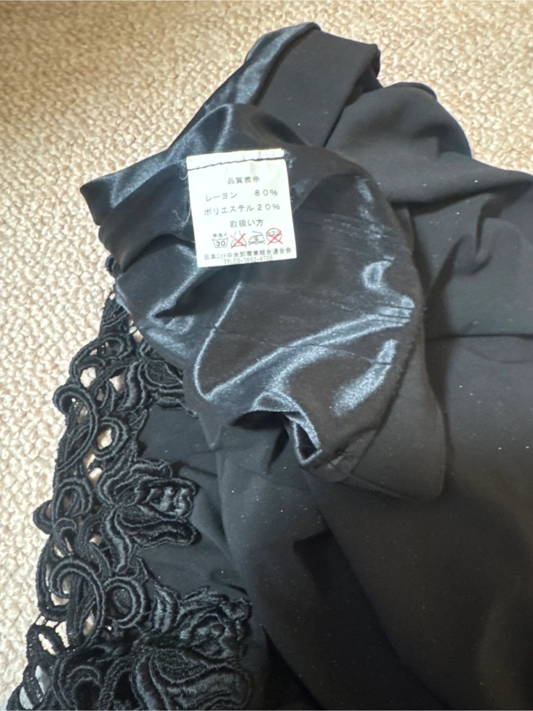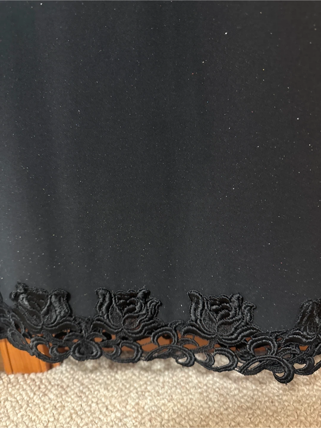 黒色の小さなラメ入りスカートです デパート購入日本製 ・色:黒 ・スカートの裾にレースの薔薇デザインがあります ・素材:レーヨン80%、ポリエステル20% ・使用感少なめ サイズは 丈が75㎝ウエスト幅70㎝位です。 ウエストはゴムが入っています。 中古品であることご了承ください