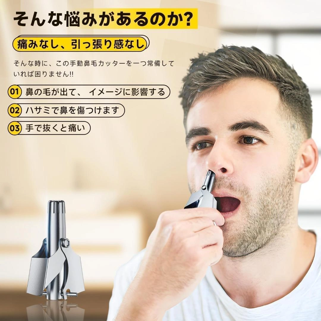 ご覧いただきありがとうございます✨ 手動式の鼻毛カッターです。熱くならず、鼻毛を引っ張らない設計とのことです。12枚の両刃技術で、痛みのないトリミング体験ができるそうです。 3Dデザインのトリマーヘッドと回転するインナーリングブレードを備えており、どの方向にも安全に鼻毛を扱えるとのことです。ステンレス製なので水洗い可能です。 【商品内容】シェーバー×1、クリーニングブラシ×1 SUEKISS 鼻毛カッター 鼻毛切り 手動 鼻毛切り エチケットカッター バリカン 回転式 痛みなし 男女兼用 充電不要 12枚立体ブレード 抗菌チタン素材 安全 簡単 持ち運び便利 N289 ご希望の方はお気軽にご連絡ください。