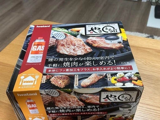 イワタニ社のスモークレス焼肉グリル、焼きまる2です。 (品番:CB-SLG-2, 定価:5500) 家で肉をよく食べなかったため 4回ぐらい使って後、放置し続けたので出します。 なので使用感が多くない良好な状態です。 ただ、引越ししながらグリルの取っ手を紛失しましたので 含まれていませんので承知ください。 (ガスも含まれていません) (確認したら、取っ手は楽天で154円で販売中ですので参考にしてください。 【公式】イワタニ / Iwatani やきまる用 プレート用取っ手 CB-SLG-1-TOTE イワタニ Iwatani [楽天] #Rakutenichiba https://item.rakuten.co.jp/i-collect/0003307/?scid=wi_ich_iphoneapp_item_share)
