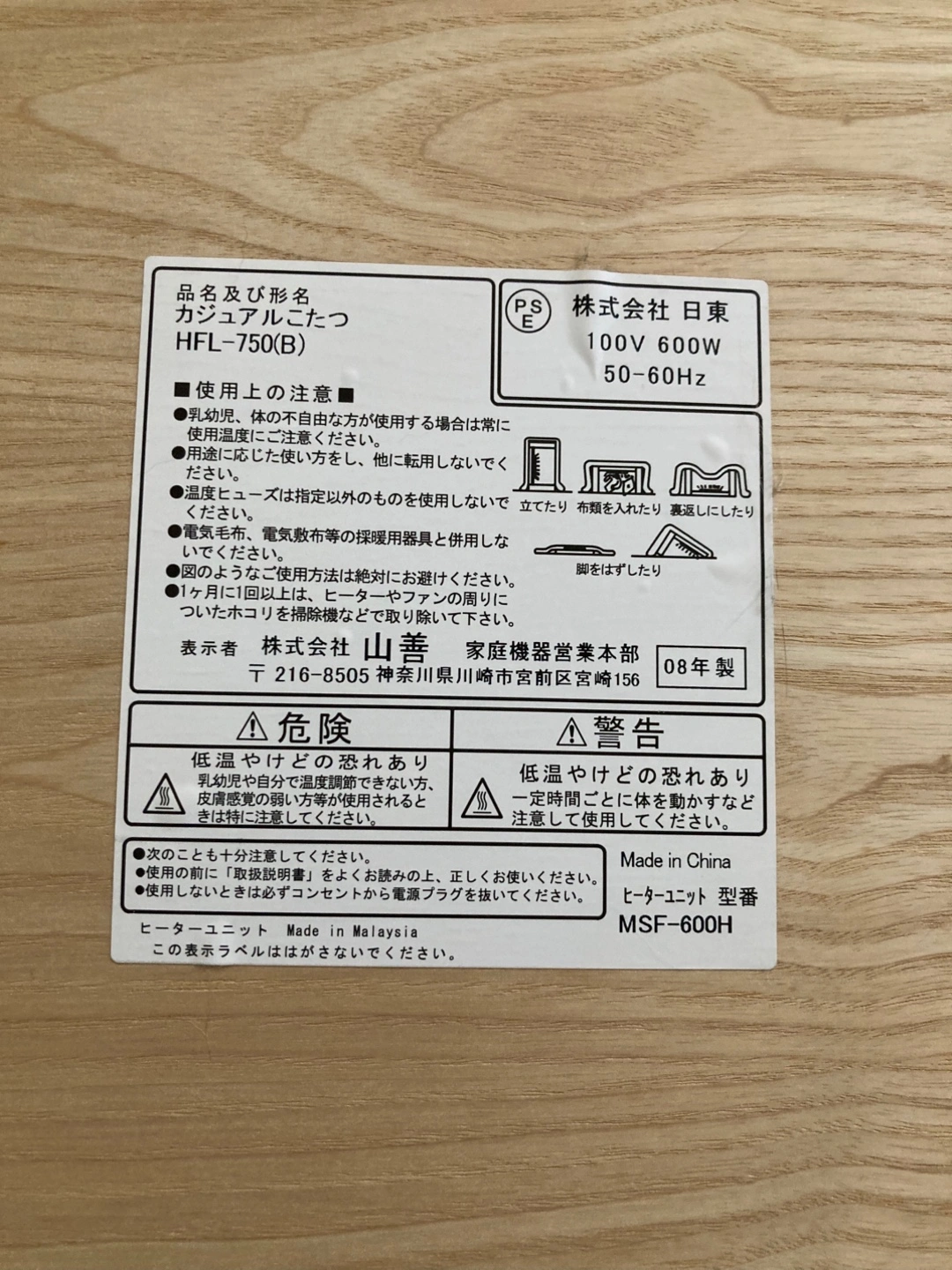 ※大東橋公園から100m以内のマンションに引取りに来ていただける方にお譲りします 【情報】 品名及び形名:カジュアルこたつ HFL-750(B) 75cmの正方形 年式:08年製 定格:100V 600W 50-60Hz テーブル面は黒と白のリバーシブル。 テーブル本体には目立つ傷や汚れはありませんが、コタツ用コードには使用感があります。 年数は経ちますが、問題なく使用できます。