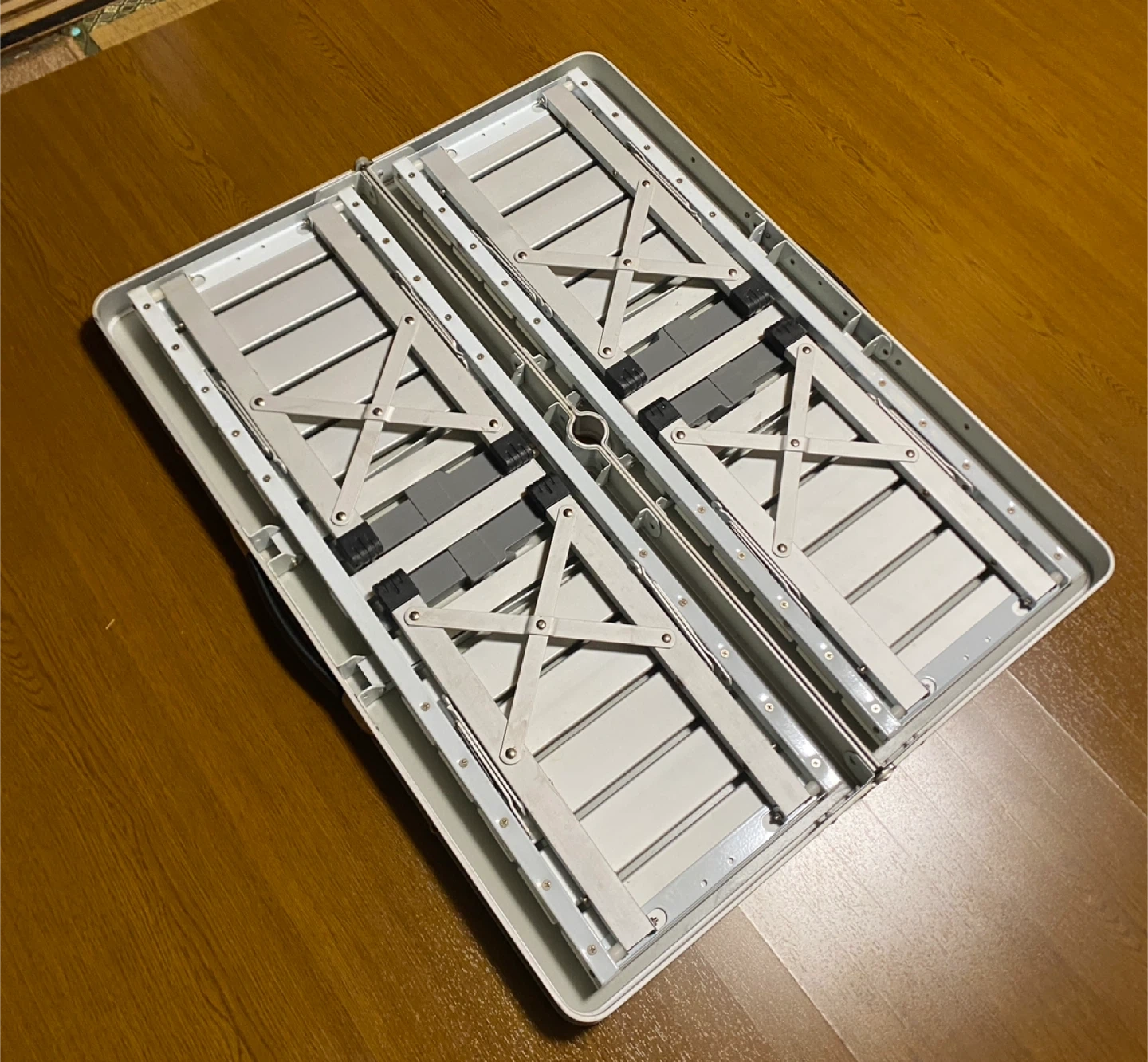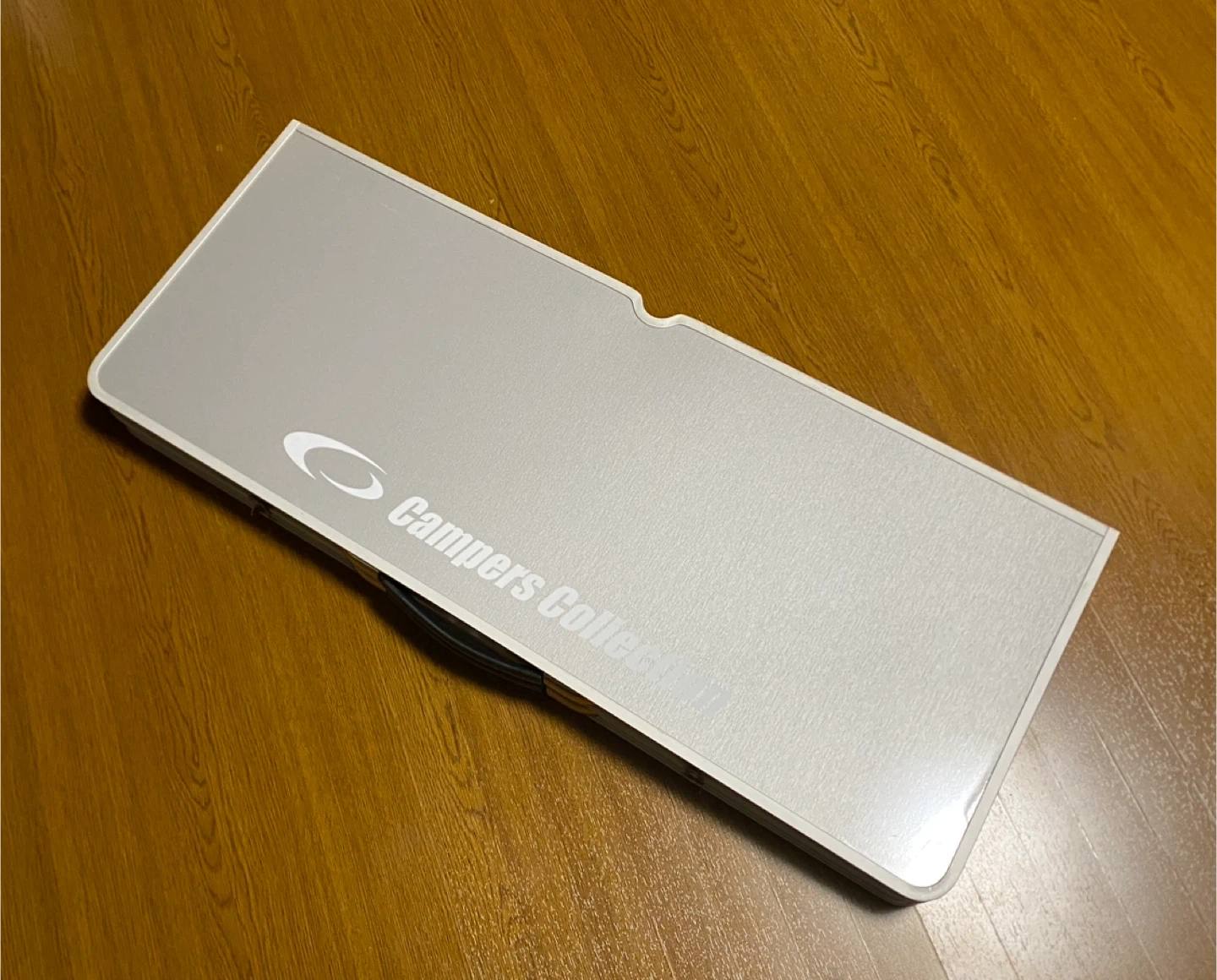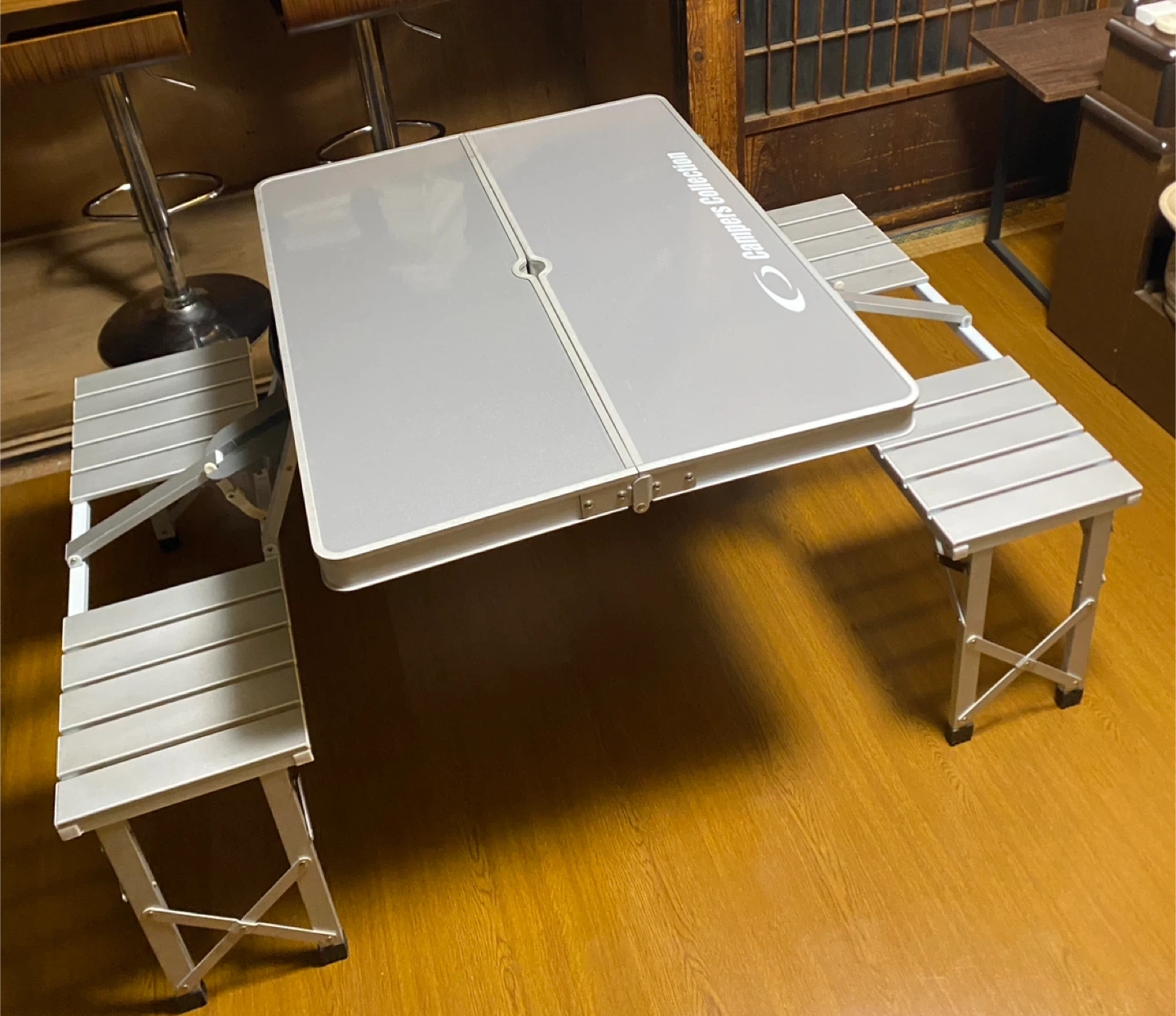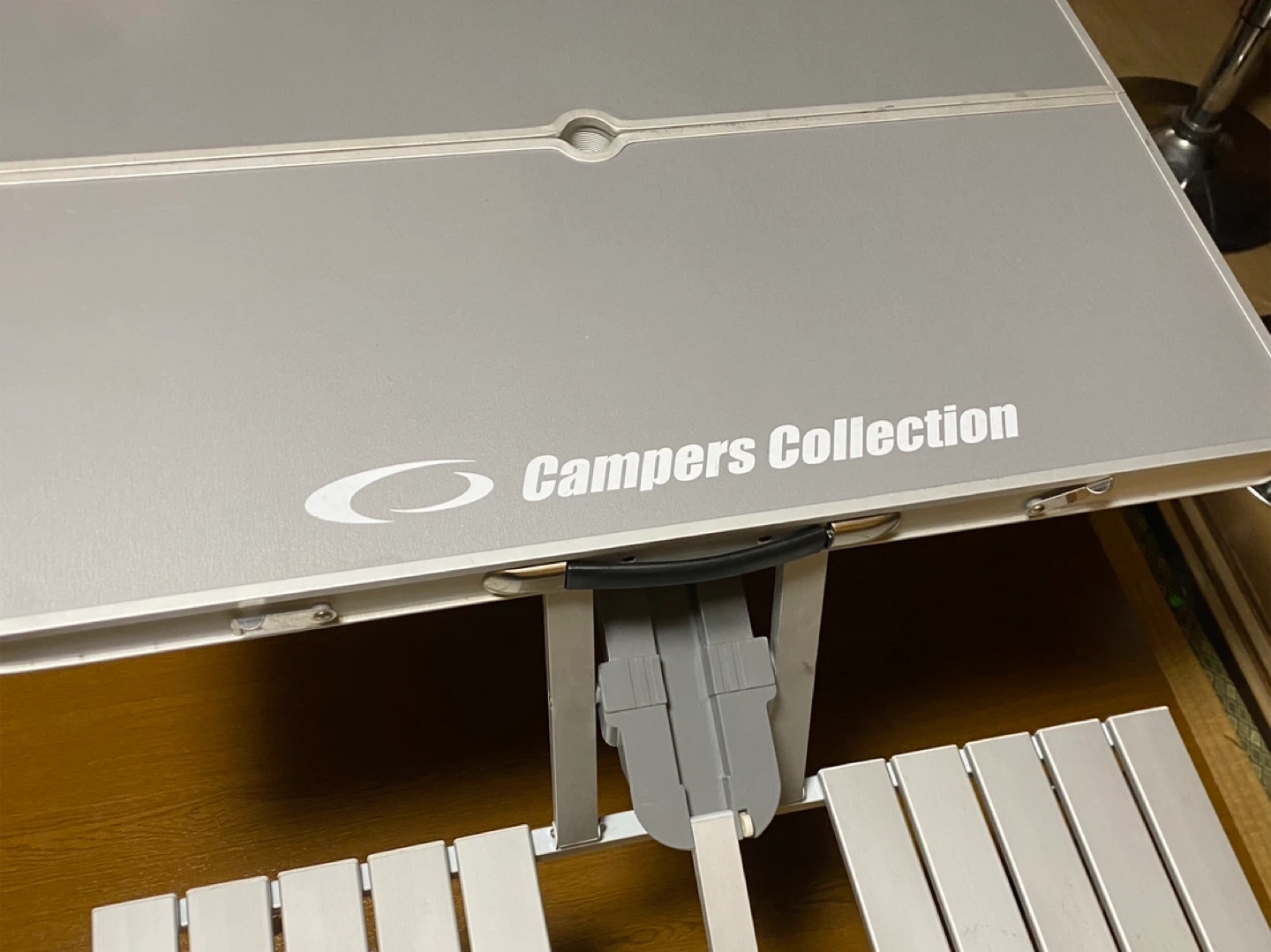 キャンパーズコレクションの折りたたみテーブル椅子セットです! キャンプはもちろんレジャーなどアウトドアにおすすめです! キャンプで使用していた為、傷や汚れなどあります。 使用に問題はありません。 ↓商品説明 天板は熱にも水にも強く掃除が楽な合成樹脂を、天板フレーム、チェアの座部/脚部には耐食性・耐摩耗性に優れたアルミニウム合金(アルマイト加工)を、また強度や耐荷重が必要な構造部にはスチールを採用し、強度と耐久性のあるアウトドア志向のテーブルチェアです テーブル/チェアセットで使用時のサイズ:幅約136(椅子を含む) 幅約67.5(天板)×奥行86×高さ67.5cm ・チェアのサイズ(1脚):幅約30×奥行27×高さ41cm ローテーブルで使用時のサイズ 幅約67.5(天板)×奥行86×高さ42cm  ※チェアを引き出さずに脚だけを立てれば、ローテーブルになります 収納時のサイズ:幅約35(持ち手含む)×奥行87×厚さ10cm 荷重:テーブル/約40kg(均等)、チェア/1面約70kg×4面 重量:約10kg パラソルホール付。ポール外径が32mmまでのパラソルをセット可能※ホール部に付属のホルダーを装着 素材:アルミ、スチール、ポリエチレン他 ※各部の材質は類似品及び現品確認による概要であり参考です テーブル部:【天板】合成樹脂化粧繊維板(ポリエステル樹脂)、【フレーム】アルミニウム合金(アルマイト加工) チェア部:【構造部材】スチール、【座部及び脚部】アルミニウム合金(アルマイト加工) その他構造部材:スチール