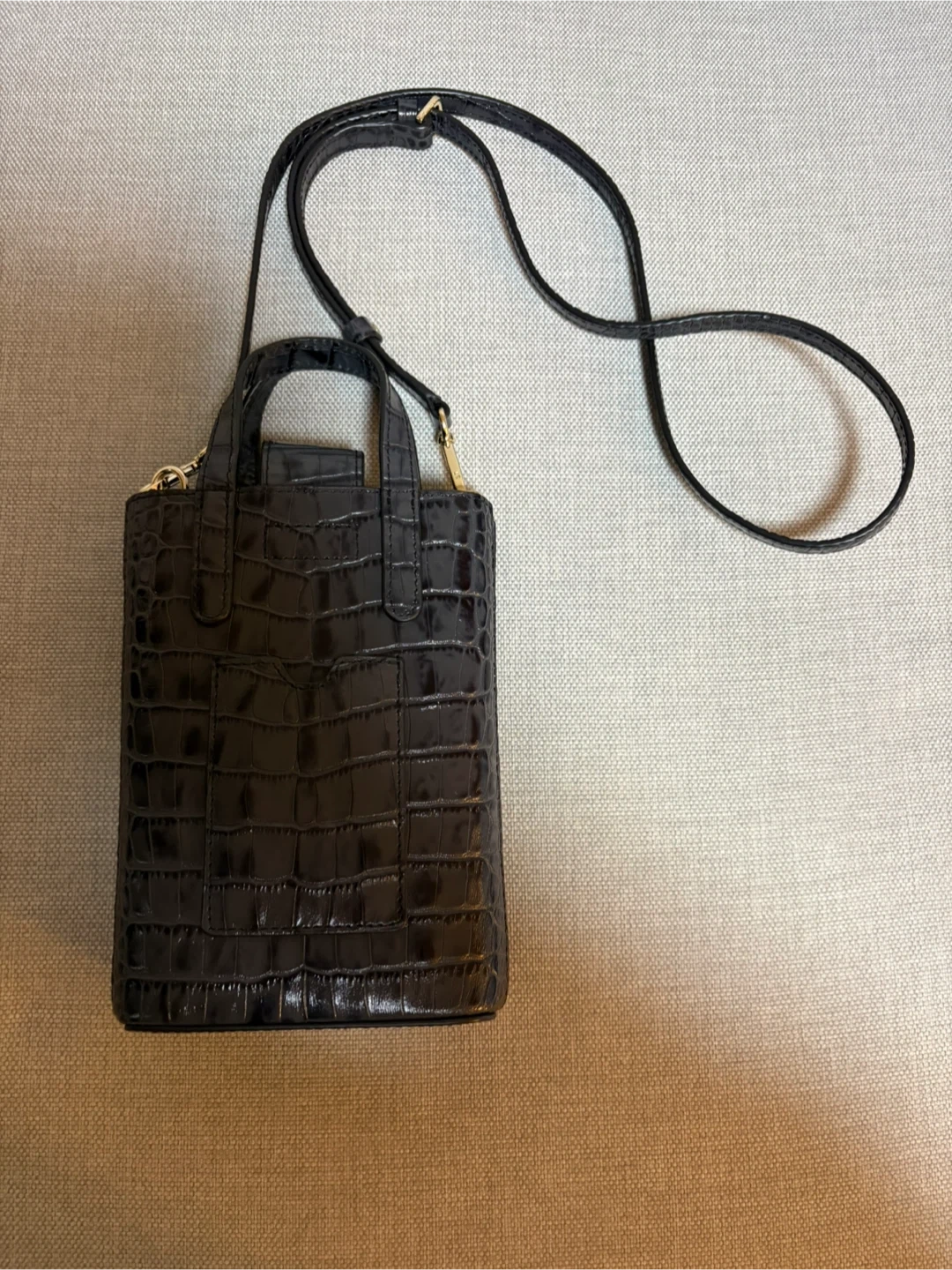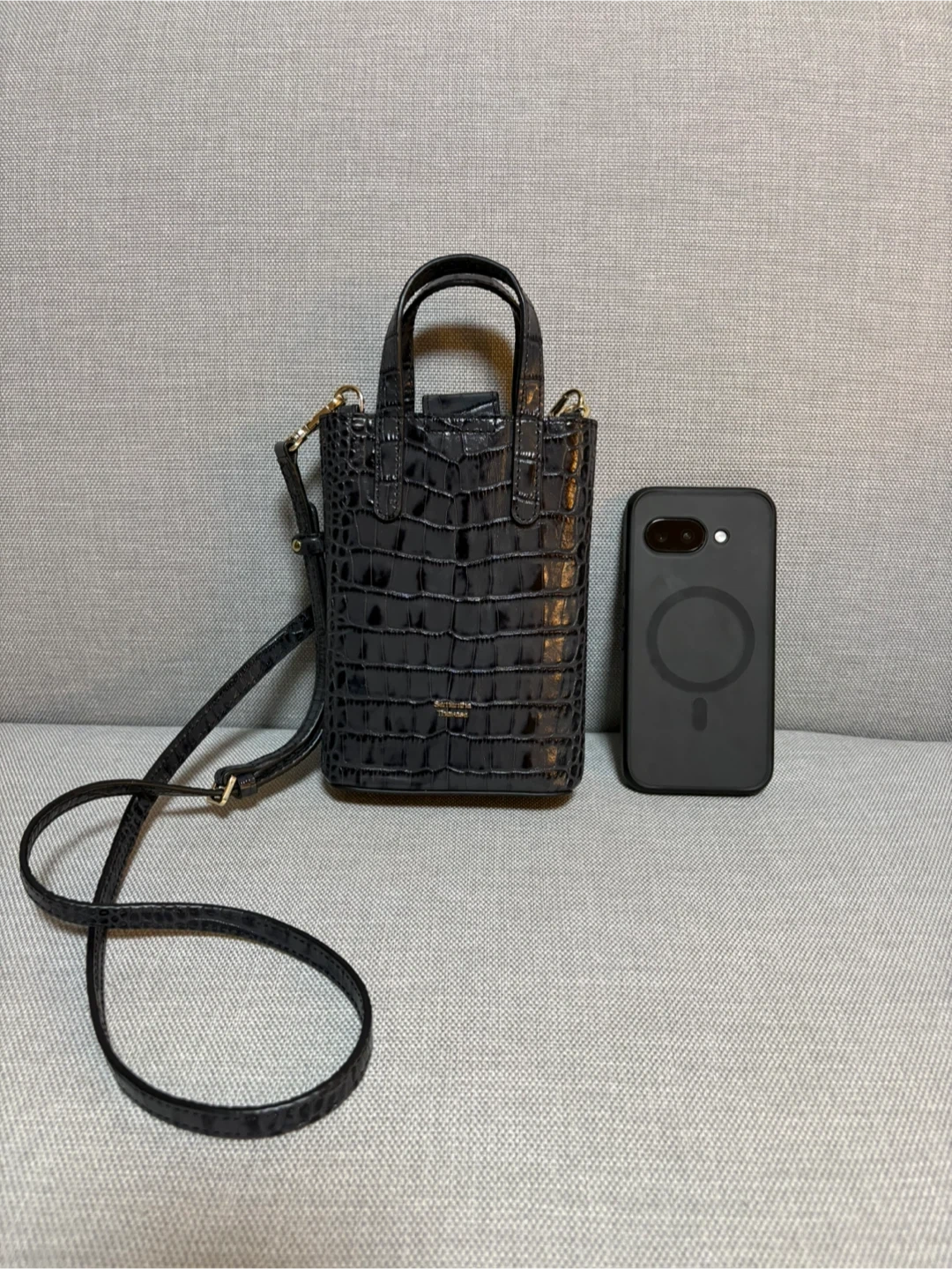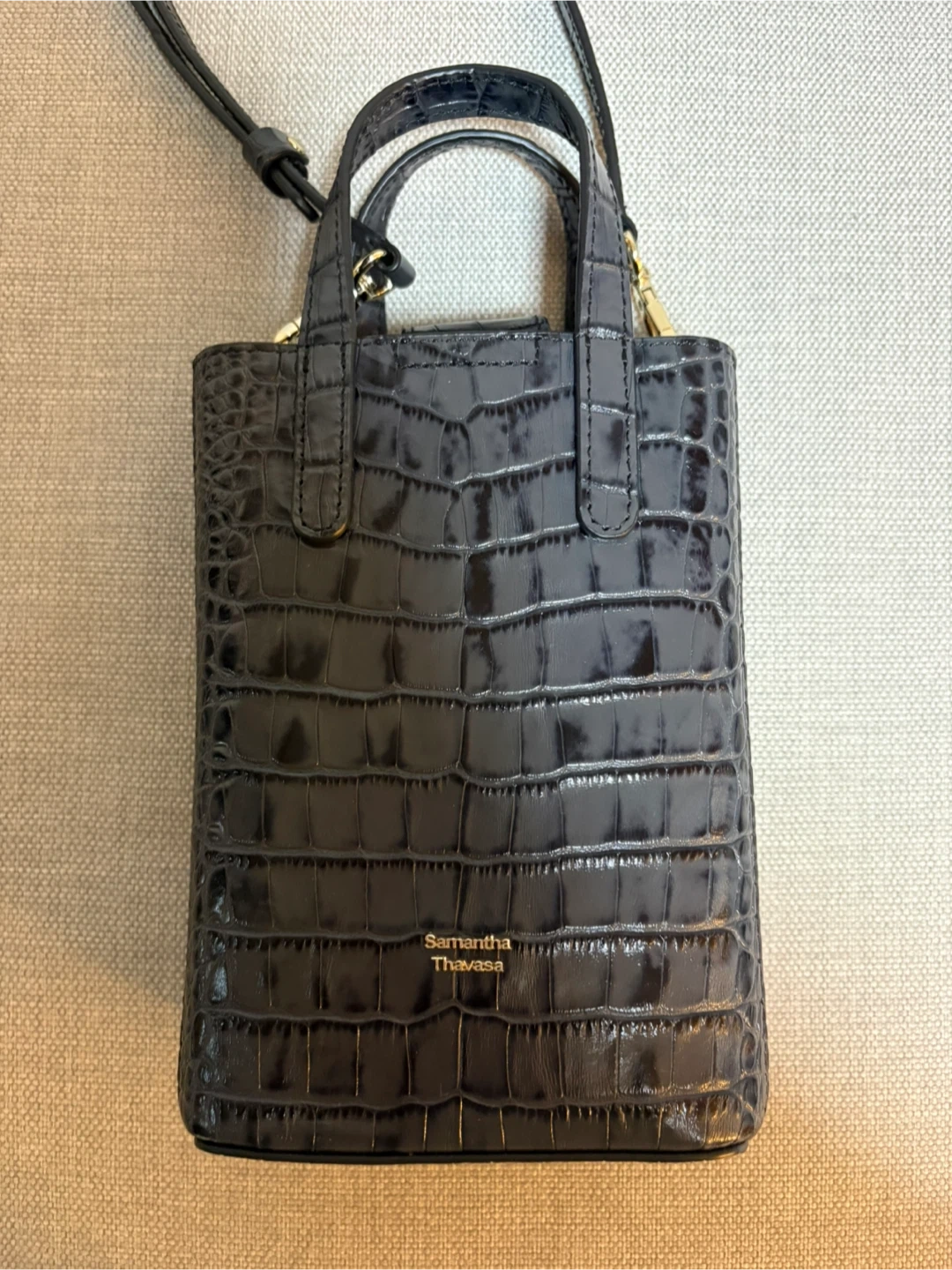 Samntha Thavasaのシンプルで洗練された黒のクロコダイル風トートバッグ。 携帯とちょっとしたものが入るちょうどいいコンパクトなサイズです。 韓国で買いましたが、ほぼ使用していなく、新品に近いです。 - 色: 黒 - 素材: クロコダイル風合皮 - デザイン: 取り付け・外し可能なトートバッグスタイル - 特徴: シンプルで洗練された外観 - サイズ: 小型 ご覧いただきありがとうございます。