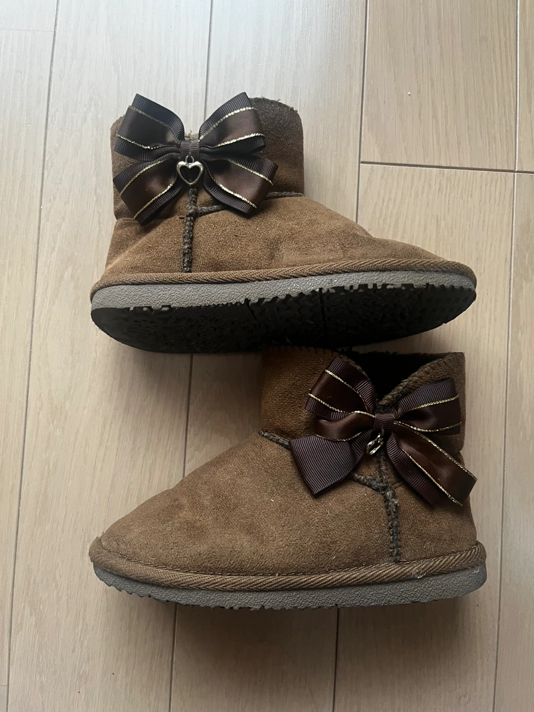 キッズのショートブーツです。 ・色:ブラウン ・サイズ:19cm ・リボンとハートの飾りが付いています ・使用感があります 自宅保管の中古品であることをご理解いただき、返品・返金は承っておりま せんので予めご了承くださいませ。 ※他の出品物とまとめてご購入いただける場合はお値引きいたします。 ※世田谷区内・近辺であればお近くまでお届けも可能です。ご相談ください。