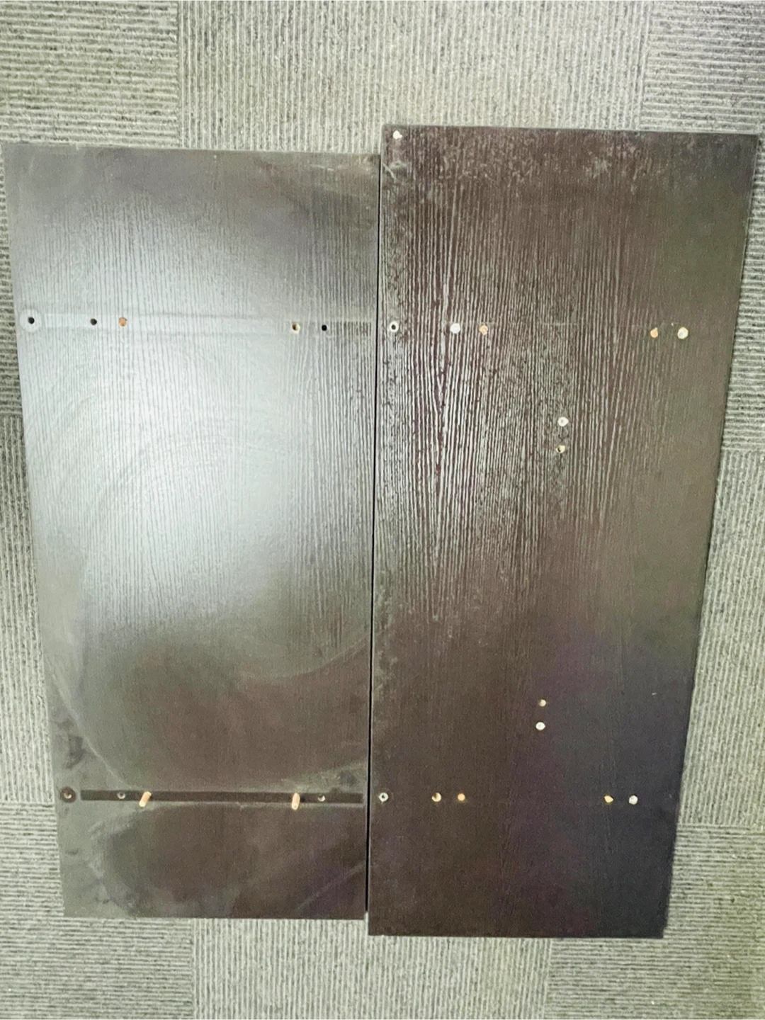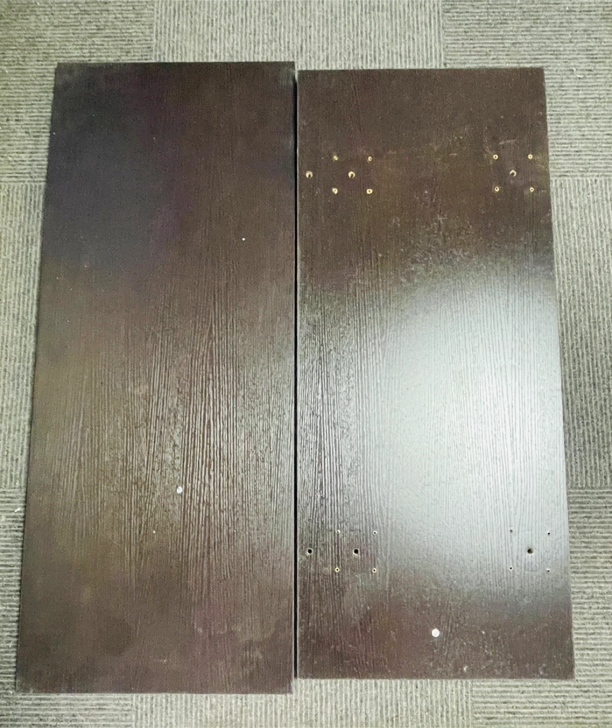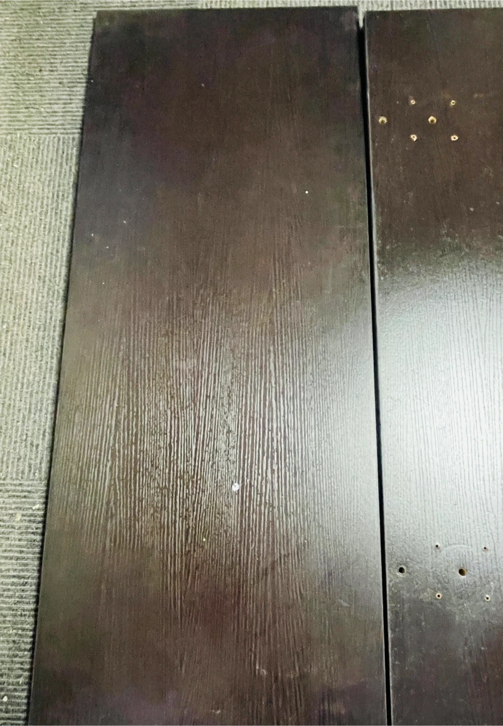 12/17(水)午前中までにお引き取りいただけることが必須条件となります。 化粧板2枚 L100 x W45 xD2cm L95 x W45 xD2cm ダークブラウン ラックの一部だったので、ダボ穴はあります。 北区中十条まで来て頂ける方のみと取引させていただきます。梱包は致しません。 埼京線十条駅および京浜東北線東十条駅が最寄り駅ですが、駅でのお取り引きには応じません。指定場所でのお取り引きとなります。 以上、よろしくお願い致します。