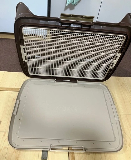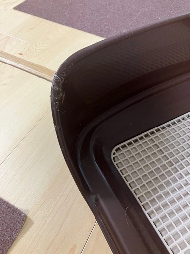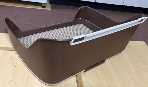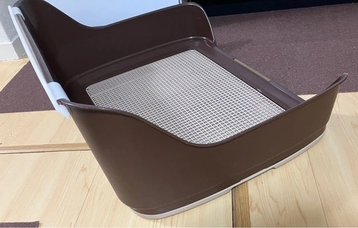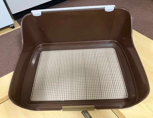 犬用のペットトイレです。 ワイドサイズのペットシート(もしくはレギュラーサイズ2枚)をセットしてご使用いただけます。 左右と奥が高くなっているので、跳ね返りや男の子のマーキングにも対応できて便利かと思います。 5.5kgのオスのジャックラッセルテリアが使用しておりました。 模様替えで配置したいところにサイズが合わず、新しいものを購入したので出品します。 ペットシートを掘り返すいたずら防止の網もついています。 網は取り外した状態で使用しておりました。 大きな傷などは無いかと思いますが、写真2枚目、少々噛み跡がございます。 水洗い&ペット用の掃除シートで簡易清掃済みですが、犬のいる場所で保管していたため毛がついています。お引取り後、ご自身にて再度清掃お願いします。 ※粗大ゴミにて廃棄予定なので、12/23までに引き取りお願いします※ ※12/18.19.21.23は終日可能。12/20は14時以降。問い合わせ時に、日時ご指定ください※ ※他にもペット用品出品しております、まとめてお引取りいただける方、優先します※