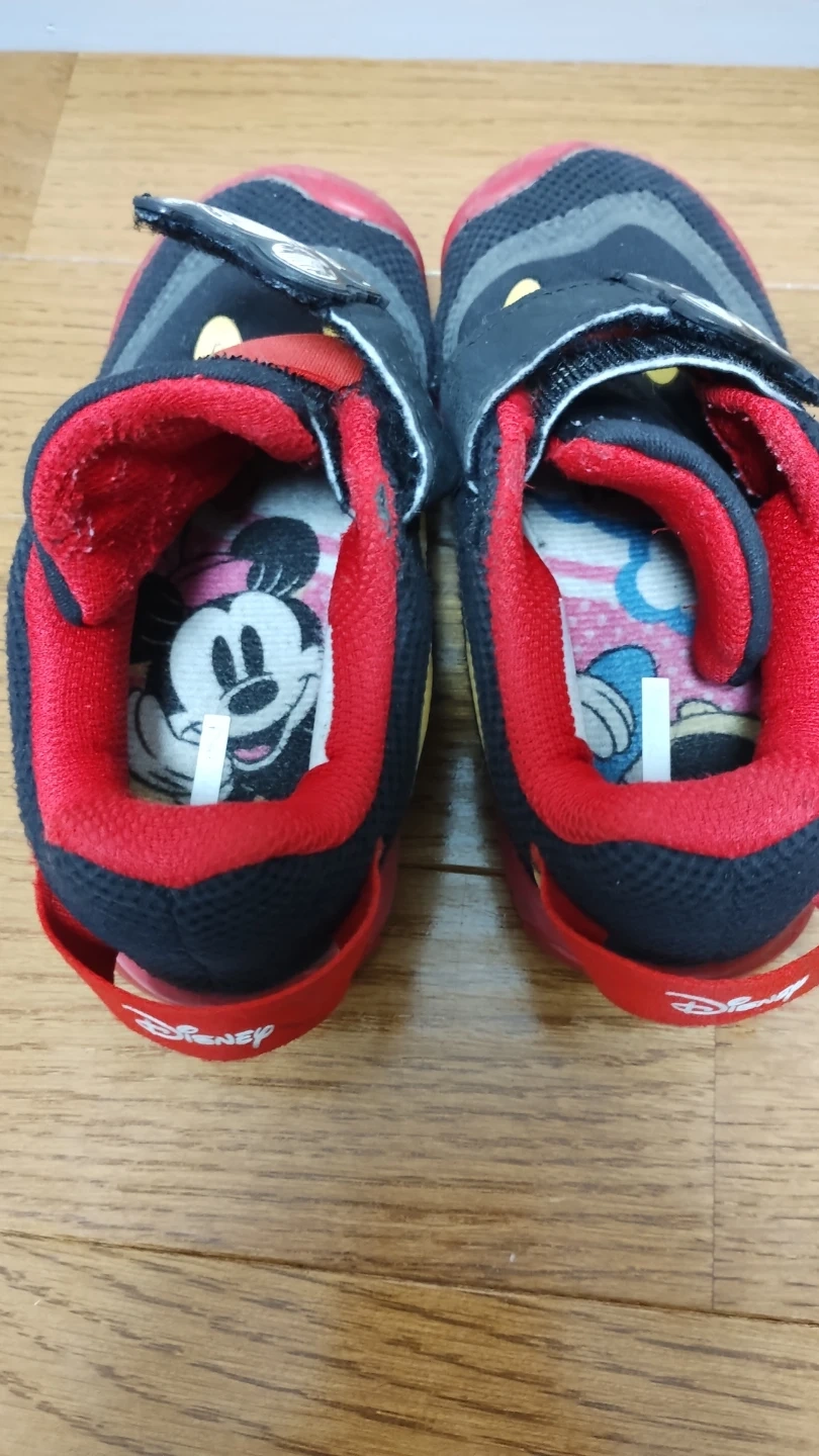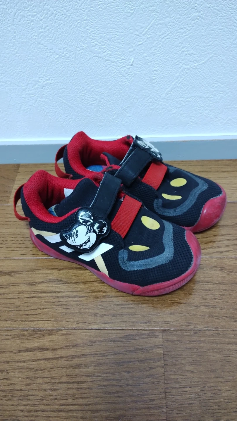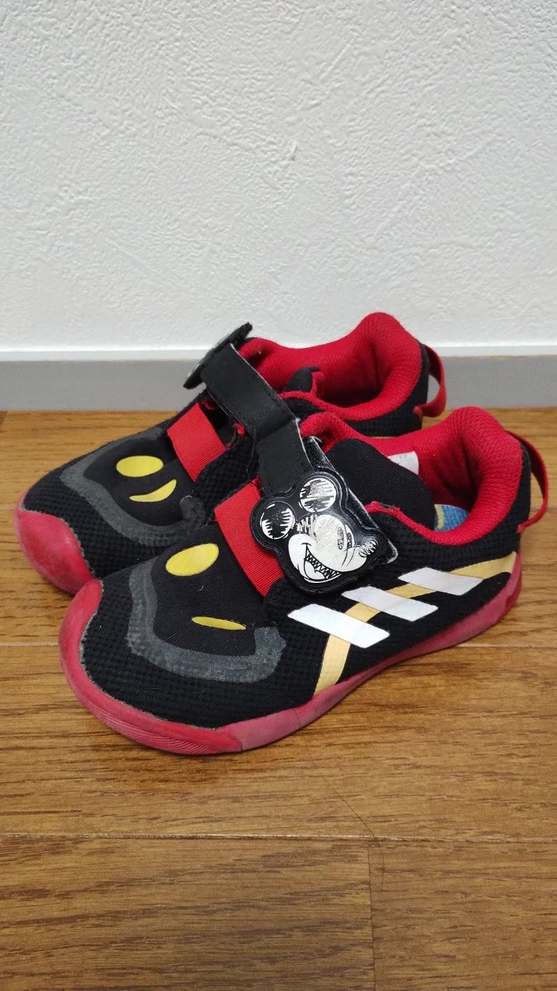 ディズニーのベビー・キッズ用シューズです。  adidas ・カラー:ブラック、レッド、イエロー ・マジックテープ式 ・ミッキーマウスの装飾 ・かかとにDisneyのロゴあり ・ソールは赤色 ・使用感あり 中古品であることをご了承ください。