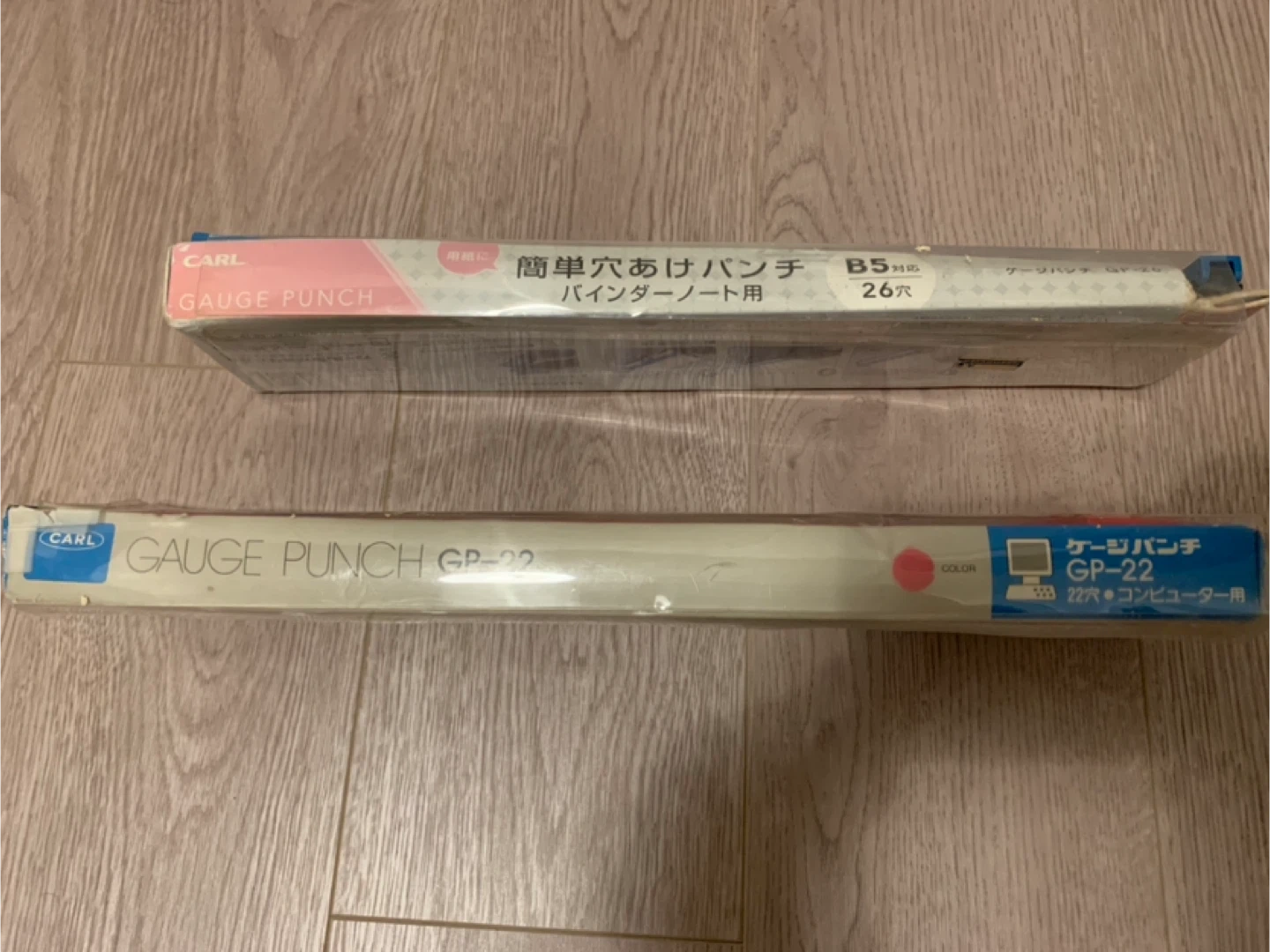 カール事務器のゲージパンチです 【情報】 ブランド:カール事務器 種類:ゲージパンチ 型番:GP-26、GP-22 対応:B5サイズ(GP-26)、22穴コンピューター用(GP-22) 【状態】 使用頻度少ないです。箱に傷みあり 中古品であることご了承ください ご覧いただきありがとうございます。5個以上まとめてご購入いただける方はさらにお値引き致します。 是非ご検討宜しくお願い致します。