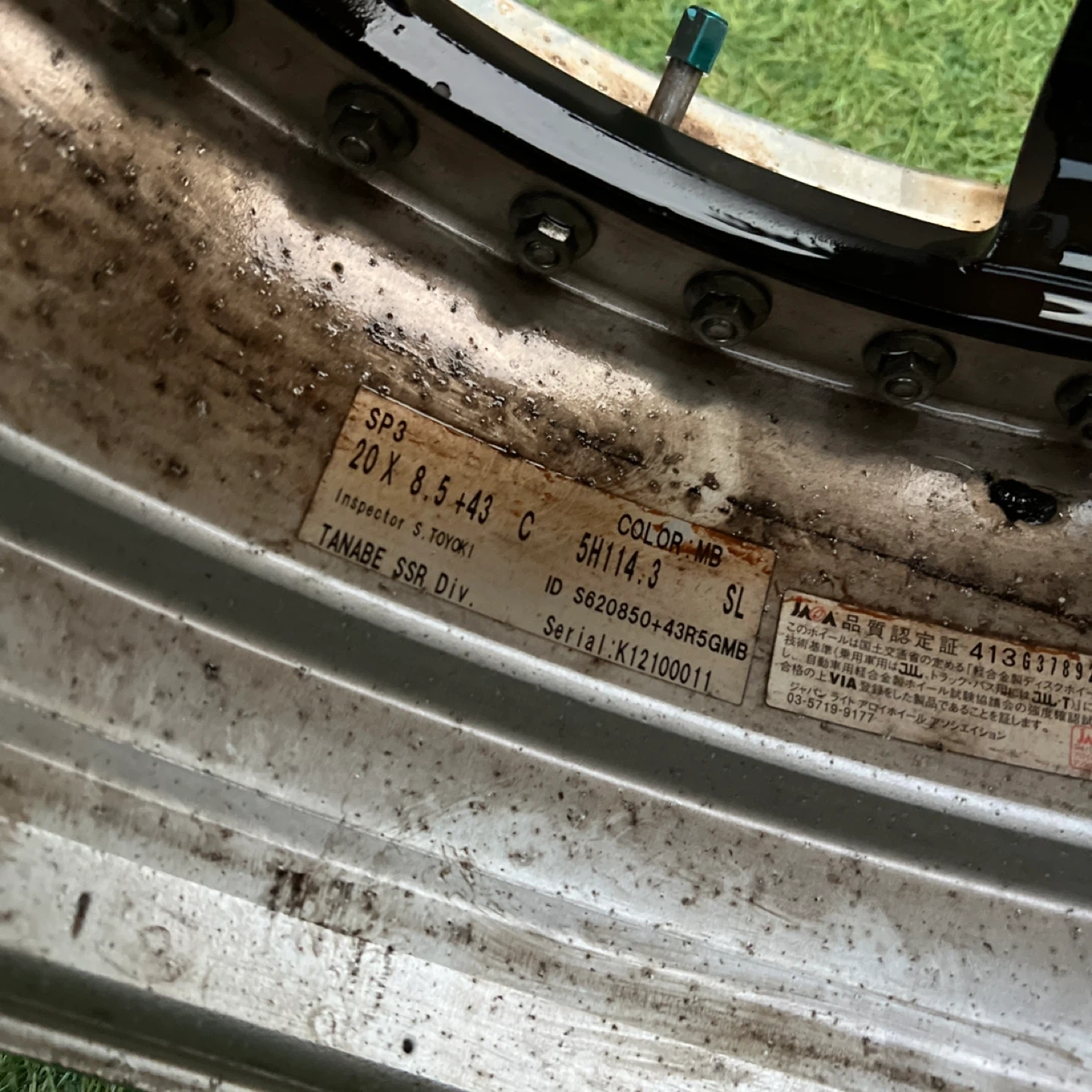横浜市内であればプラス1,000円で配達可能です! 予定が合えば多少離れたエリアでも配達可能です。 ※その他地域はコメントにてご相談くださいませ! SSR PROFESSOR SP3 プロフェッサー 20インチ 8.0J +37 8.5J +43 PCD114.3 5H タナベ スピードスター 深リム 段リム 廃盤品 しばらくカバーを掛けて保管しておりました。 購入当時確か50万くらいで購入しました。 結構汚れているので明日あたりに磨いて写真を撮り直します。 使用に伴う、傷や汚れはあるかと思いますが、まだまだ使用可能です。 写真にてご確認くださいませ。 中古品をご理解の上ご検討下さいませ!