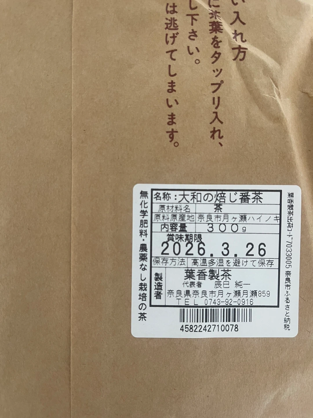 2025年産、無農薬、無化学肥料の大和の焙じ番茶 300g