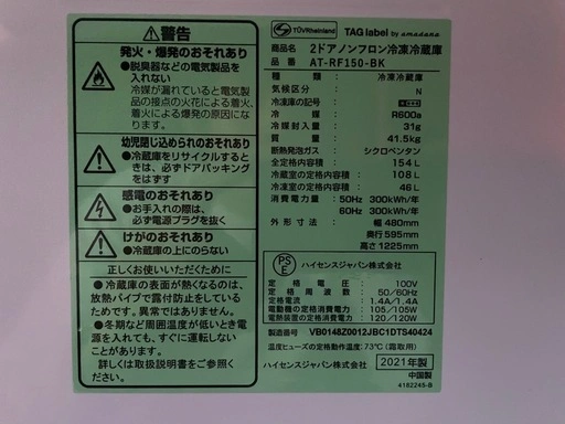 【2511006】TAG label by amadana 冷蔵庫 2021年製