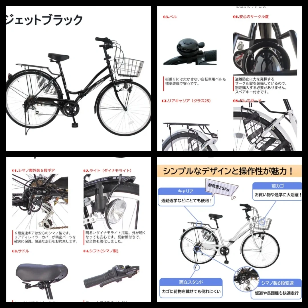 ・本体 ・カギ2個 ・説明書 シマノ製6段変速のママチャリ自転車、 2025年2月に購入、1年未満なのでキレイです、 普段の買い物に使用していました、スクーターを購入したので、出品しました、 6段ギアがついているので、ちょっとした坂道も快適、 折りたたみ出来ます、 画像5枚目は、買った時の商品の画像です、参考にしてください、 受け渡し場所は、六会日大前駅から約20分です、よろしくお願いいたします。