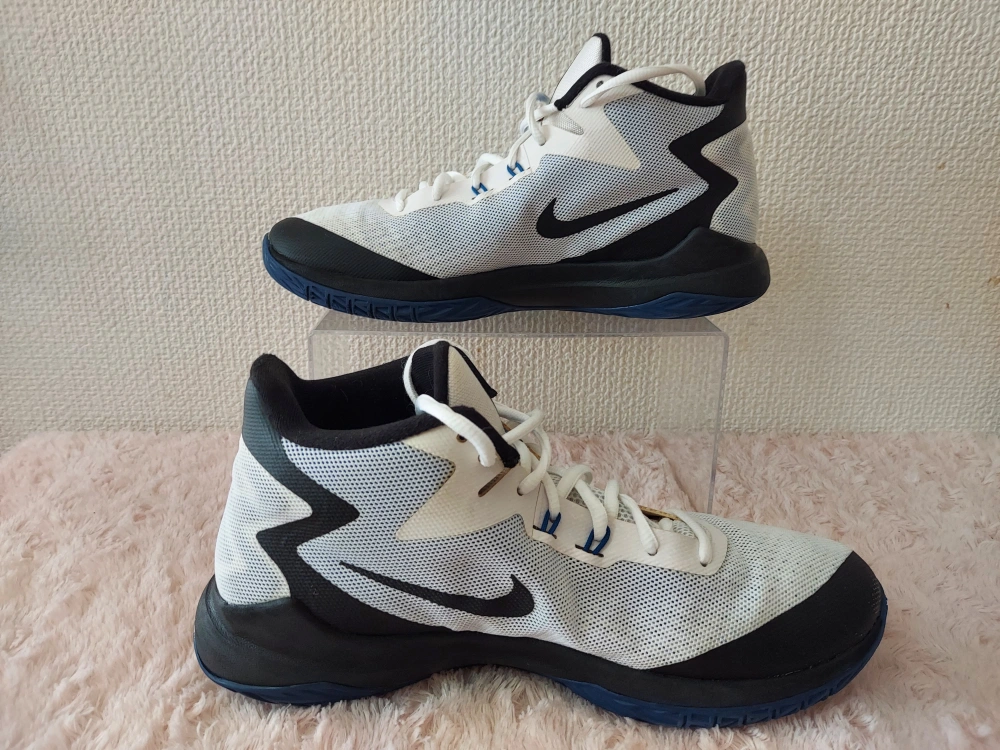 ご覧頂きありがとうございます。 サイズが若干合わなかったため出品致します。 商品の状態は画像にてご確認下さい。 【ブランド】 NIKE ナイキ 【アイテム】 ZOOM EVIDENCE ズーム エビデンス 【色、柄】 ホワイト 【サイズ】 26cm 状態の確認をしておりますが、見落としてしまった多少の汚れやダメージがある場合もありますので、あらかじめご了承ください。 ※神経質な方、中古品に 抵抗がある方は購入をご遠慮くださいm(__)m