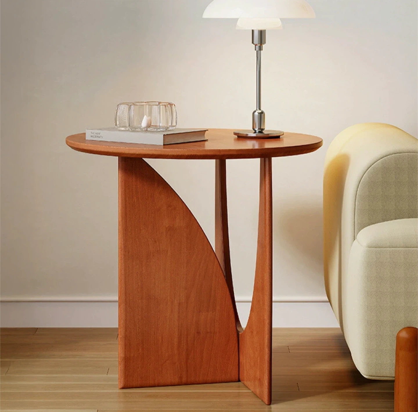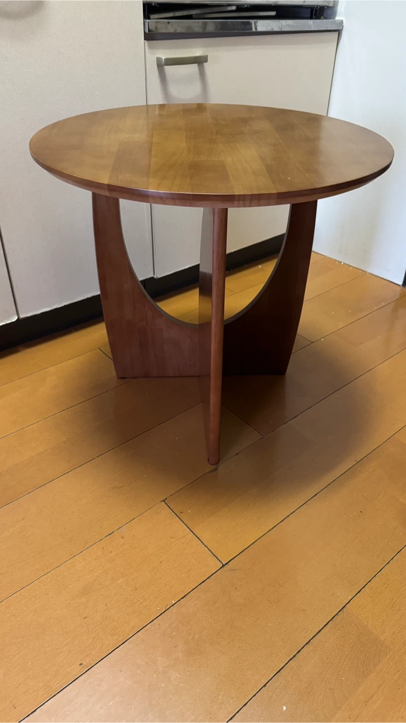 木製のサイドテーブルです。 重さ4.6kg ・色:ブラウン ・状態:小さな傷あり ・デザイン:特徴的な脚のデザイン 11月の末に購入して 1度しか使用してないので 未使用に近いですが、運搬の際に傷が付きました 12/27まで限定で出品します。