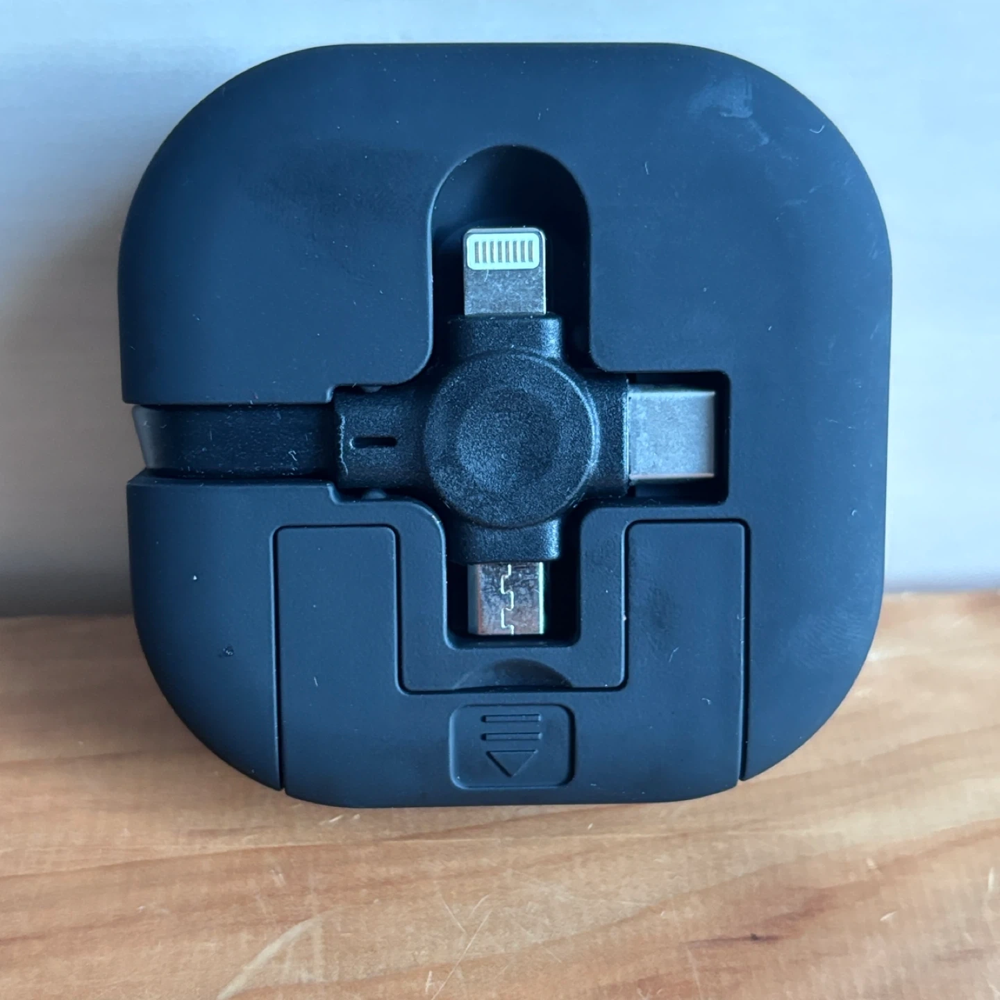 3in1マルチファスト充電ケーブル コンパクト収納 持ち運び便利 1Mの長さと2.4A出力を持つ、3in1マルチファスト充電ケーブルです。 - Length: 1M - Voltage: 5V - Output Current: 2.4A - Type: 3in1 Multi Fast Charge Cable - Color: Black USB Type-A、Type-C、Type-B、Lightning スマホスタンド機能付き コンディション 未使用品
