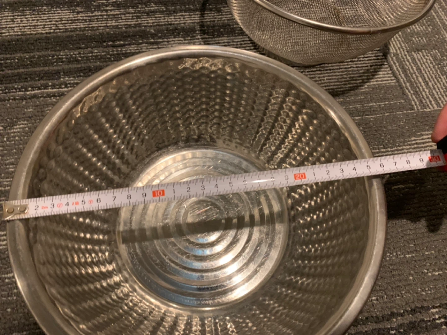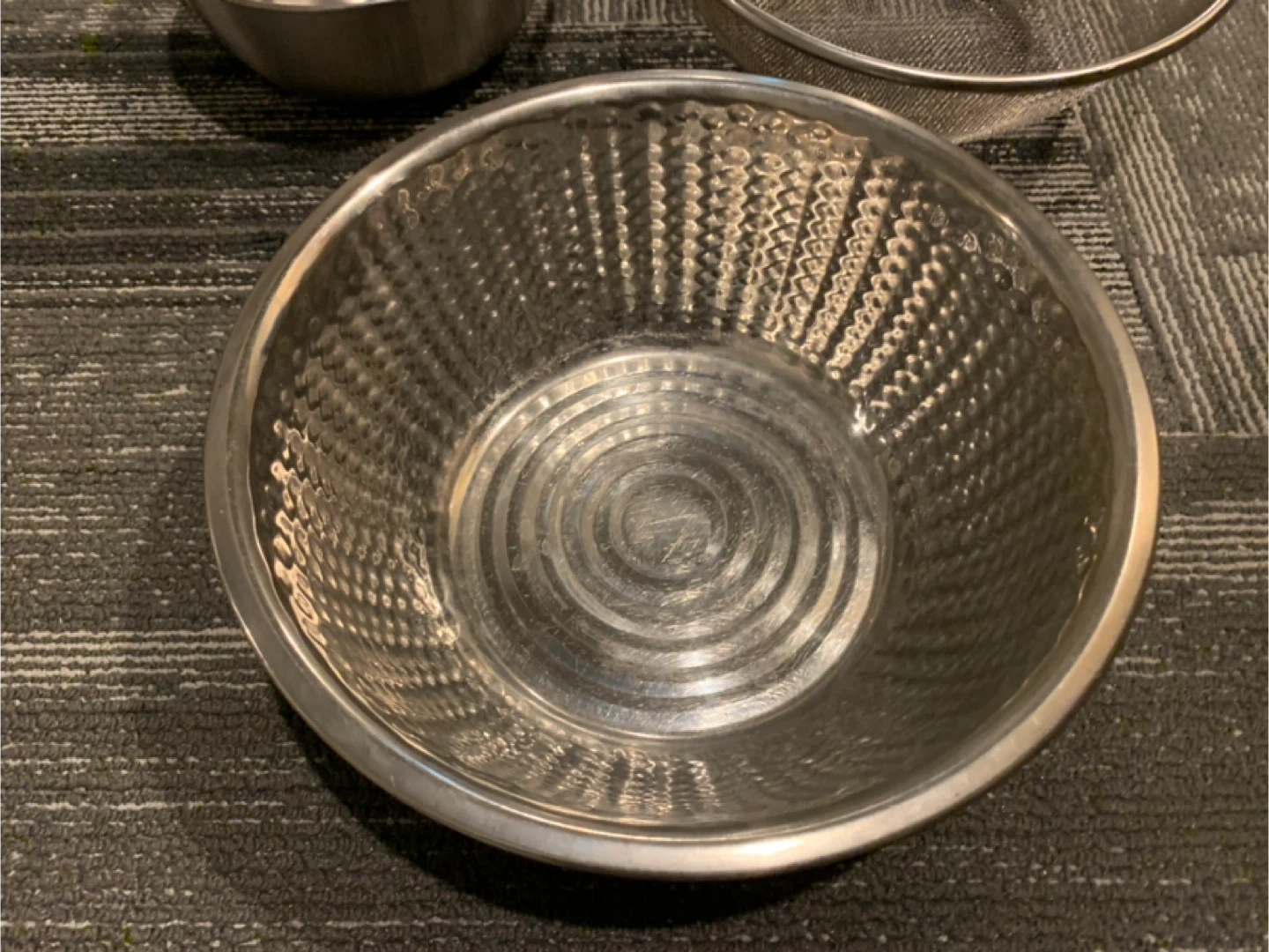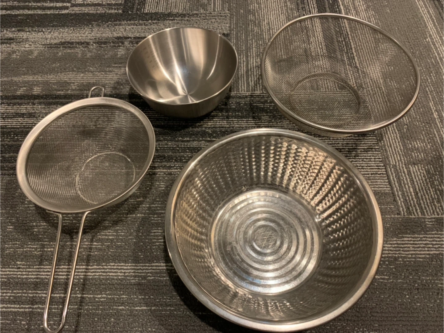ボウルとザルのセットです ・素材:ステンレス ・状態:使用感あり ・サイズ: ・ボウル大:直径約20cm ・ボウル小:直径約12cm ・ザル大:直径約20cm ・ザル小(取手付き):直径約16cm 中古品であることご了承ください