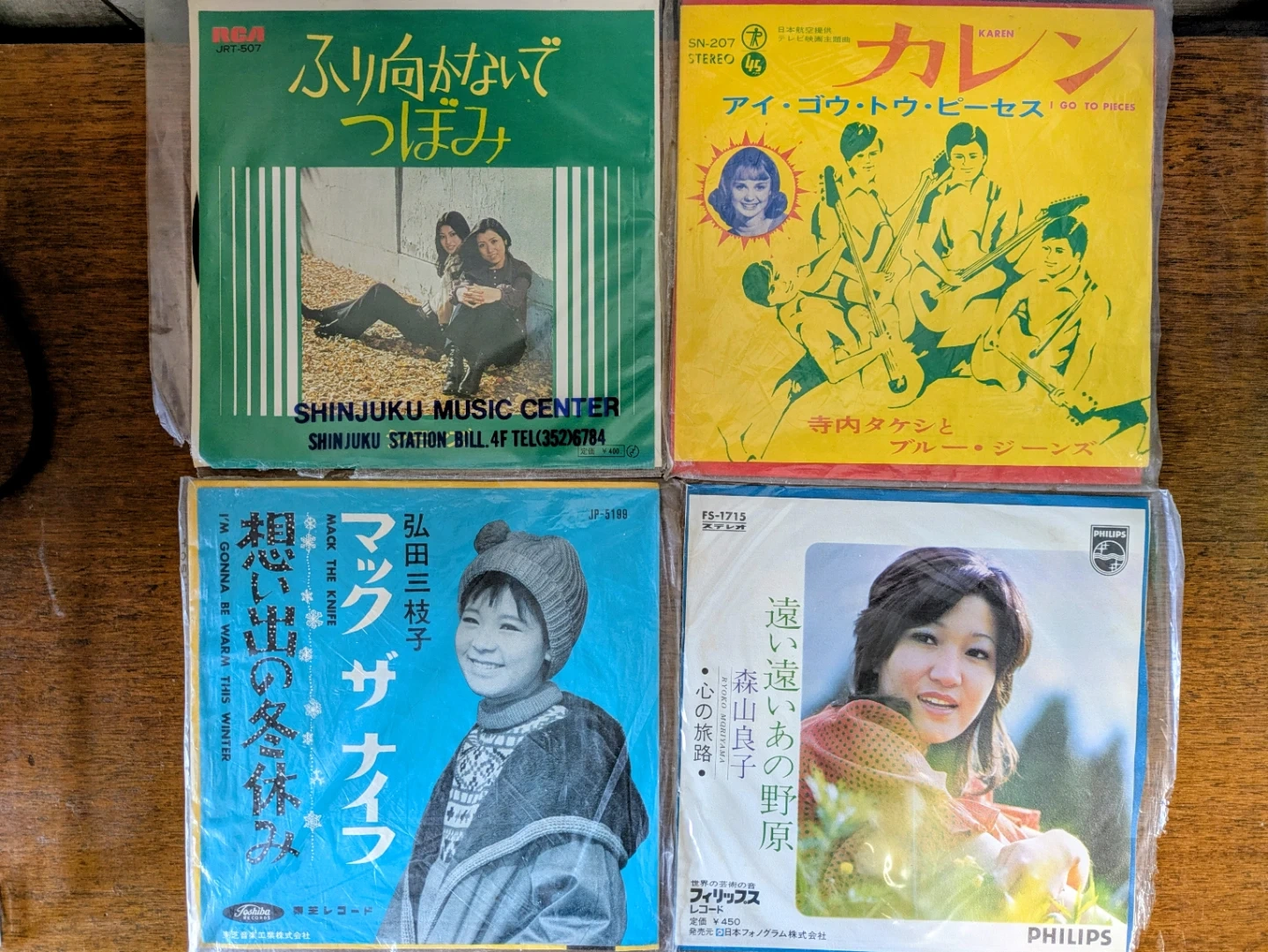 昔のシングルレコード4枚セットです。 当時物なので、経年劣化がありますが、盤面は概ねきれいです。 ・RCA JRT-507 ふり向かないで つぼみ 定価400円 ・SN-207 KAREN アイ・ゴウ・トゥ・ピーセス ・PHILIPS FS-1715 森山良子 遠い遠いあの野原 定価450円 ・TOSHIBA JP-5199 弘田三枝子 マックザナイフ 中古品であることご了承ください