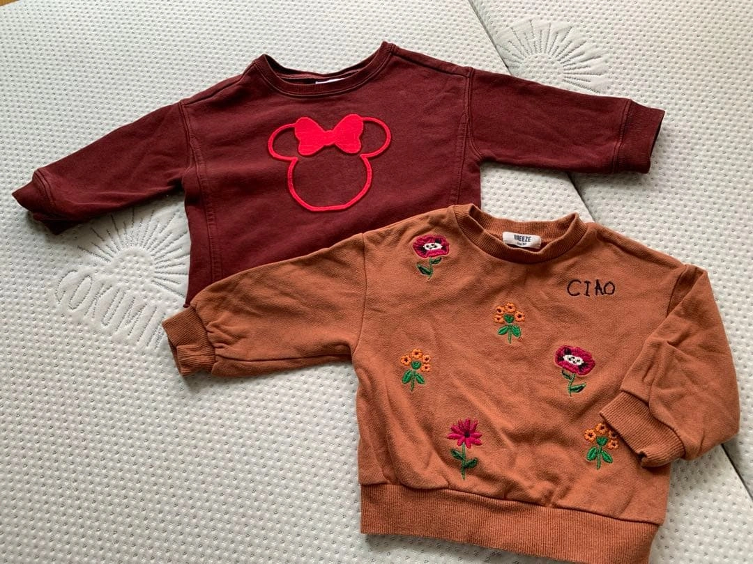 GAPとブリーズの長袖 トレーナー 80cm 2点セットです。 お花の刺繍やミニーちゃんマークがとっても可愛らしく、よく褒めてもらえました。 袖がすぼまっているため、小さい子でも袖がだらんとなりません。 70cm〜 80cmすぎくらいまで着用しています。 ①ギャップ 80 テラコッタ ブラウン 濃い茶色系のトレーナー ショッキングピンクのミニーのフェルト部分が可愛いです。 ②ブリーズ 80 レンガ色 明るい茶系のトレーナー ピンクやオレンジ 黄色系のお花たちが刺繍されており、とても可愛いです。 武蔵小杉駅〜大倉山駅もしくはその近辺で受渡し希望です。 保育園 【検索用】 男の子 女の子 アカチャンホンポ コンビミニ アカチャンホンポ しまむら バースデイ ベルメゾン アプレレクール #ミキハウス #ファミリ #メゾピアノ #アナスイミニ #プチバトー #パンパンチュチュ #アナスイミニ #アプレレクール #トイトイトイ #ソルボア #シアンシアン #ラグマート #ギャップ #ザラ #エイチアンドエム #ユニクロ UNIQLO #carter's #カーターズ #ブランシェス #GU ジーユー #フィス #ベルメゾン #西松屋 #KP #べべ #プティマイン #ハッカキッズ #トッカ #センスオブワンダー #ラブアンドピースアンドマネー #ナルミヤ #ケイトスペード #タルティーヌ #ジンボリー #ラルフローレン H&M ZARA ブーフーウー バックアレイ マリメッコ モンシュシュ ムージョンジョン