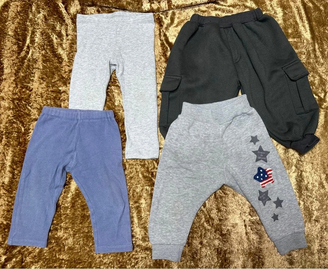 あたたかさグレーにUSA国旗のワンポイントの商品は裏起毛です。 グレー無地は薄手のスキニーパンツ、ブルー無地は普通地のノーマルズボンです。 これら3着は新品を購入して1シーズン使用しました。目立った汚れはありませんが、子供が保育園などで使用したものなので、それなりの使用感はあるかと思います。 濃いグレー無地は裏起毛のダボダボ系の太めのズボンです。こちらは1度しか着用していないので、綺麗な状態です。 ホームクリーニング済み。 ペットや喫煙者はおりません。 ご質問等ございましたら、お気軽にお問い合わせください。 お値下げはご遠慮頂ければ幸いです。