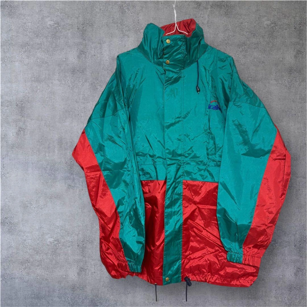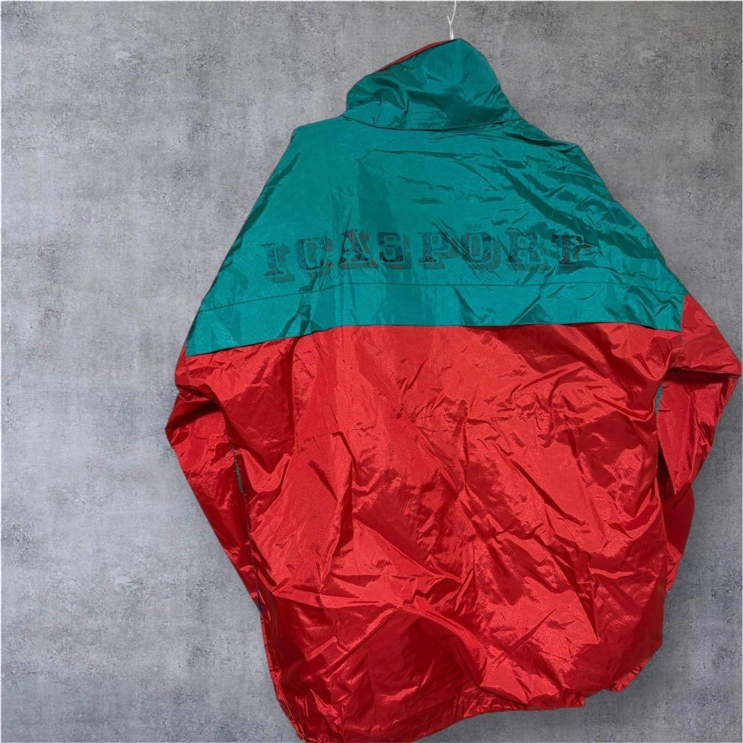 暗くなりがちな秋冬コーデの主役になる、インパクト抜群の一着です。 知る人ぞ知るブランド「ICASPORT」の90年代ヴィンテージ・ナイロンジャケットです。 最高配色(マルチカラー): グリーン、レッド、イエローの大胆なカラーブロック。 絶妙なシルエット: 表記はMですが、実寸は「US規格」のため日本のL〜XL相当のゆとりがあります。 こだわりのディテール: 背中のビッグロゴプリント、裏地はメッシュ素材。襟が高めのスタンドカラー仕様。 【サイズ(平置き実寸)】 タグ表記:M(USサイズのため大きめ、メンズL相当) ※写真とハンガーのサイズ感から推定 • 肩幅:約56cm(ドロップショルダー気味) • 身幅:約64cm • 着丈:約76cm • 袖丈:約61cm ※素人採寸のため、多少の誤差はご容赦ください。 【状態】 ヴィンテージ特有のシワや胸元の若干の汚れ、使用感、バックプリントの擦れがありますが、着用に支障のある大きなダメージはありません。 ご希望の方はお気軽にご連絡ください。