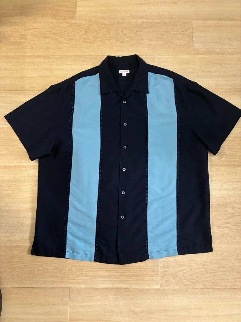 古着屋にて購入しました。 シングルステッチなので、製造年が古いものと思われます。 ほつれ箇所がちらほらあります。 肩幅 約56cm 袖丈 25cm 身幅 58cm 着丈 78cm ⚪︎サイズ表記 XL ⚪︎素材 シルク100% ⚪︎色 ネイビー×ライトブルー ネイビーと水色のストライプデザインの半袖シャツです。 - ブランド: MERONA - サイズ: XL - 素材: 60% レーヨン, 40% ポリエステル - カラー: ネイビー, 水色 ご覧いただきありがとうございます。 ご希望の方はお気軽にご連絡ください。