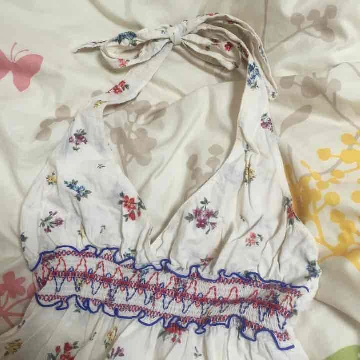 abc une faceのホルターネックワンピです。 リゾートにオススメです。 ストラップが少し汚れてしまっています。 ご希望の方はお気軽にご連絡ください。
