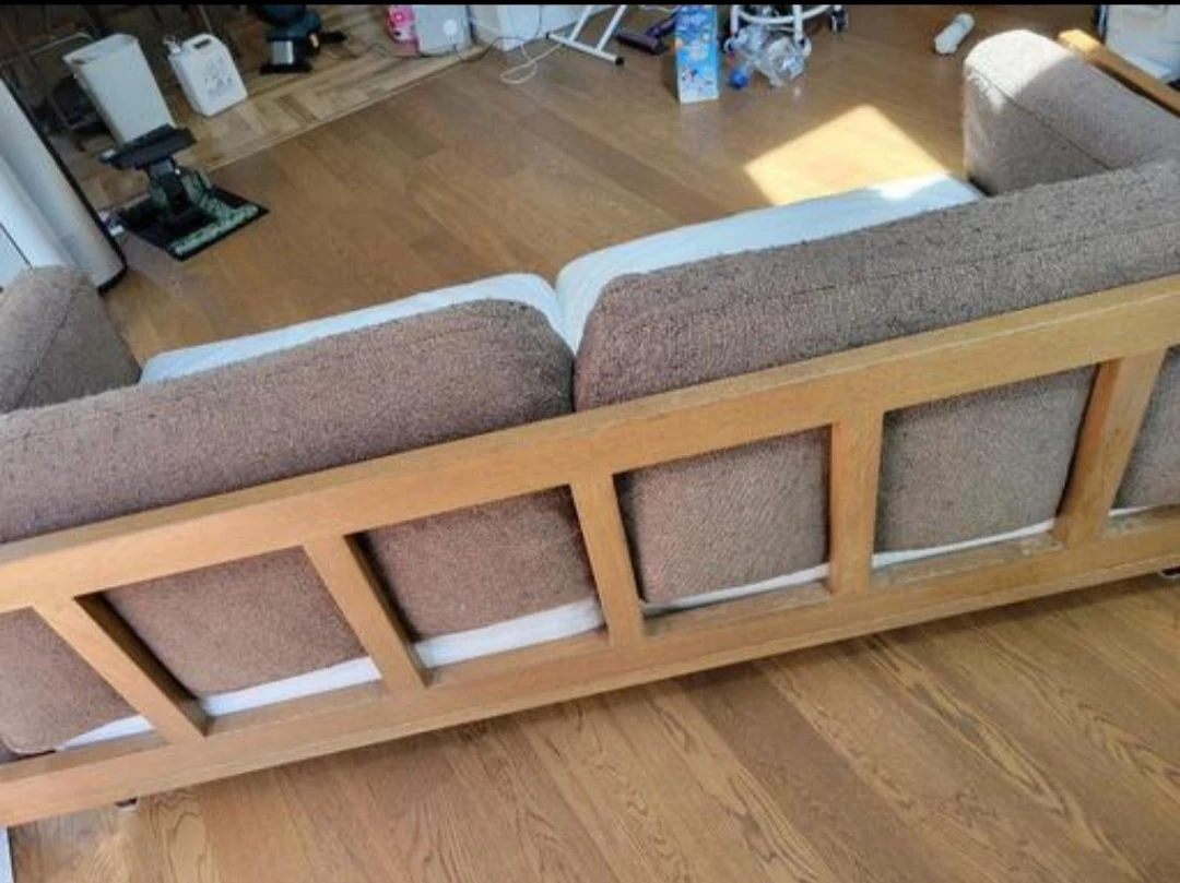 ACME Furnitureオリジナルのソファ「 CORONADO SOFA 」3シーター。 多くの日本の住環境に置く事が出来るサイズ感です。 【CORONADO】(コロナド)シリーズ 1950年代のソファをモチーフにデザインし、リゾートを思わせるゆったりとした作りが印象的。 奥行きのある座面とテーブル天板に使用しても十分なほどの厚みのあるオーク材(無垢)のアームフレームが特徴的で、 クッション自体は柔らかく仕上げ、フレームはあえて重厚に作り、強度を持たせています。 また、極限まで存在感を消した脚、通常よりも低く設定した座面高(350mm)により、圧迫感を感じないデザインとなっています。 【人数】3人掛け 【硬さ】やわらかめ 【カバー】ファスナー仕様で中材の取り外し可能です。 【サイズ】幅211 奥行90 高さ77 座面高32 【素材】カバー:ポリエステル100%、フレーム:オーク(無垢材)、 脚部:スチール 3P :¥331,650~ (in Tax) 3P :100キロ 7年使用 ペットを飼育してます。 カバーほつれ、毛羽立ちあり臭いも付いてます。 座る部分はすり減りがあった為、処分して ブランケットをかけて使用していました。 こちら、ソファーカバーは 店舗にてオーダー可能です。 お問い合わせください。 3人掛けでサイズ的にも大きく、重量もある為トラック、ワンボックスで運搬した方が良いかと思います。 積込までのお手伝いは出来ますが搬出までの経路が狭い為2人以上で取りに来ていただきますと良いかと思います。