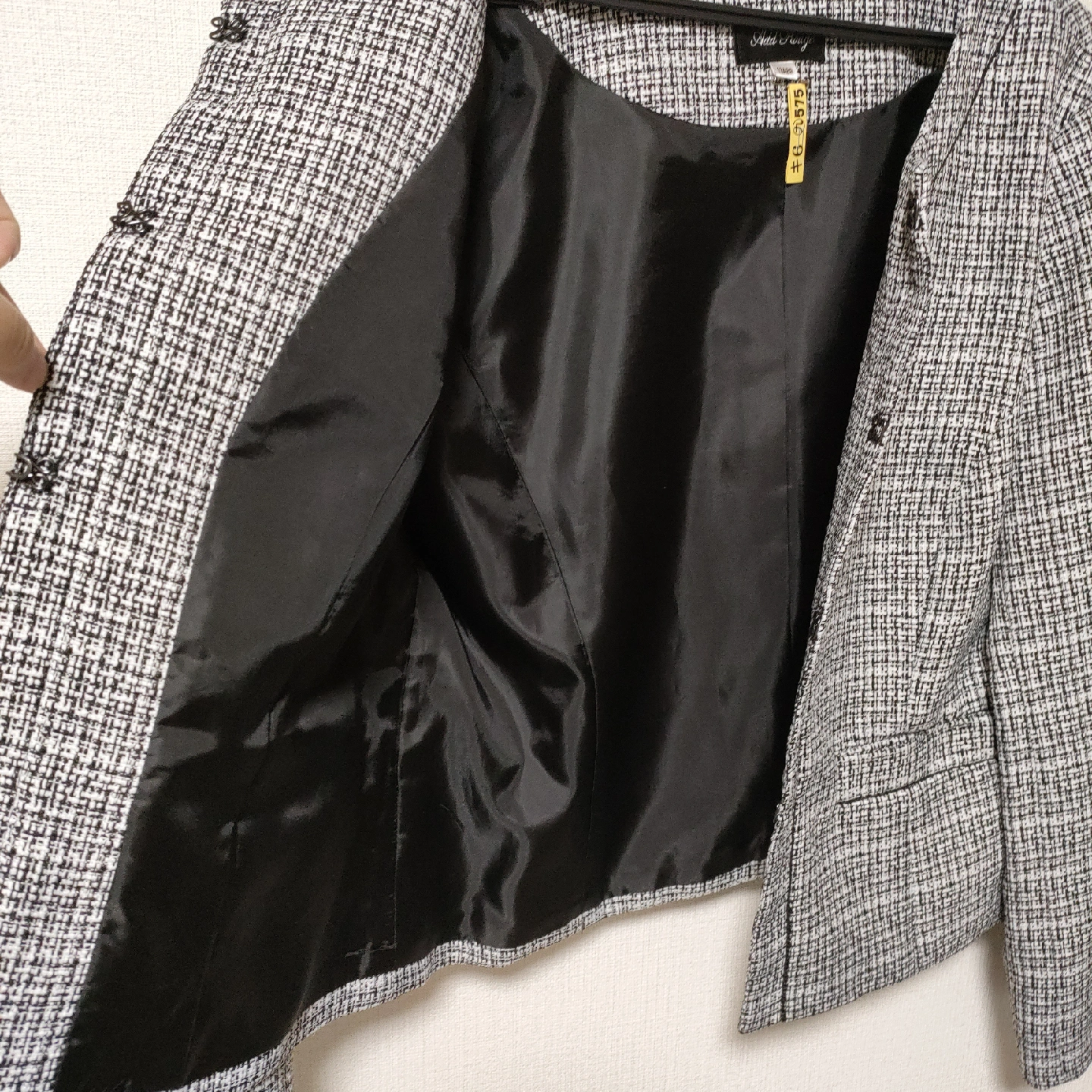 アッドルージュ ツイードノーカラージャケット ◯サイズ 表記13AR/XLサイズ相当 ◯平置き採寸(目安として) 着丈52、 肩幅41、 身幅48 、袖丈57 中古で購入し、3回着用しました。 着用時間はいずれも2〜3時間ほどです。 子どもの卒園式と入学式の式典への参列、写真撮影で着用しました。 着用ののち、クリーニングに出し、クローゼットにしまっていました。 入学式・卒業式・お宮参りなどのセレモニー、会議やビジネスなどのフォーマルなシーンに。 直前に買おうとするとサイズがなくなることもあるのでお早めにいかがでしょうか? 特に目立つ汚れやキズは見当たりませんが、小さなホツレやスレはあります。出品に際して確認はしておりますが見落としはご容赦ください。 中古品であること、ご理解いただける方のみご検討お願いします。 ■そのほか 質問・要望等は購入前にお願いします 喫煙者・ペットおりません ご希望の方はお気軽にご連絡ください。