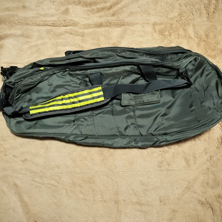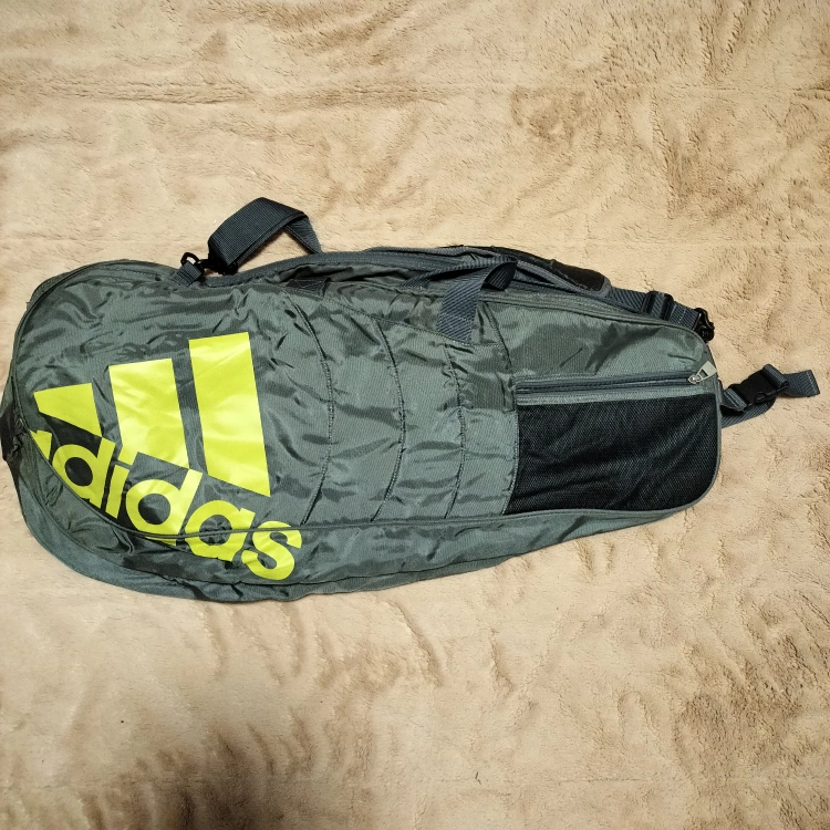 adidasのグレーとイエローのラケットバッグ、メッシュポケット付きで収納力抜群。 - ブランド: adidas - 色: グレー/イエロー - タイプ: ラケットバッグ - ポケット: メッシュポケットあり 破れの箇所有り。ロゴマークの左上。 お写真でご確認下さい。 まだまだお使い頂けます。 長期保管の為、ご理解頂ける方のみお願い致します。 ご覧いただきありがとうございます。 テニスバック ラケットバッグ 大会 硬式 スポーツ アディダス