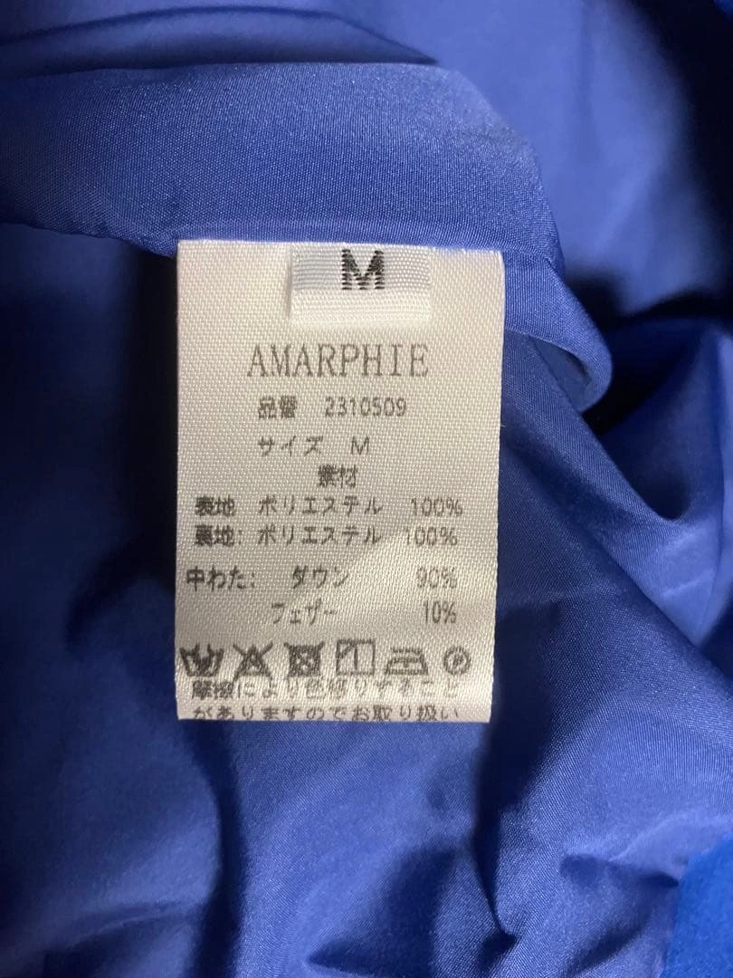 アマルフイー ロングダウンコート 新品 【スタイリッシュなデザイン】 このフード付きロングコートは、鮮やかな青色が特徴で、シンプルながらも洗練された印象を与えます。 【高い保温性】 中わたに90%のダウンを使用しており、寒い季節でもしっかりとした保温性を提供します。 【快適な着心地】 ポリエステル素材で軽量かつ柔らかく、動きやすさを重視したデザインです。 - 色: 青 - デザイン: フード付きロングダウンコート - スタイル: ベルト付き - ブランド: AMARPHIE - サイズ: M 身幅50CM 着丈115CM - 素材: 表地: ポリエステル100%、裏地: ポリエステル100%、中わた: ダウン90%、フェザー10% 新品未使用ですが使用するつもりでしたのでタグはありません(サイズアウトの為出品します) 53,000円のお品物です ご覧いただきありがとうございます。