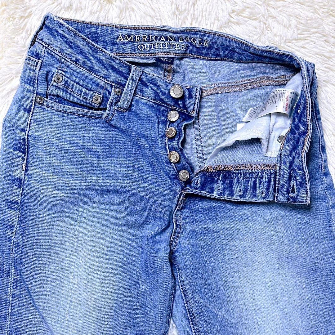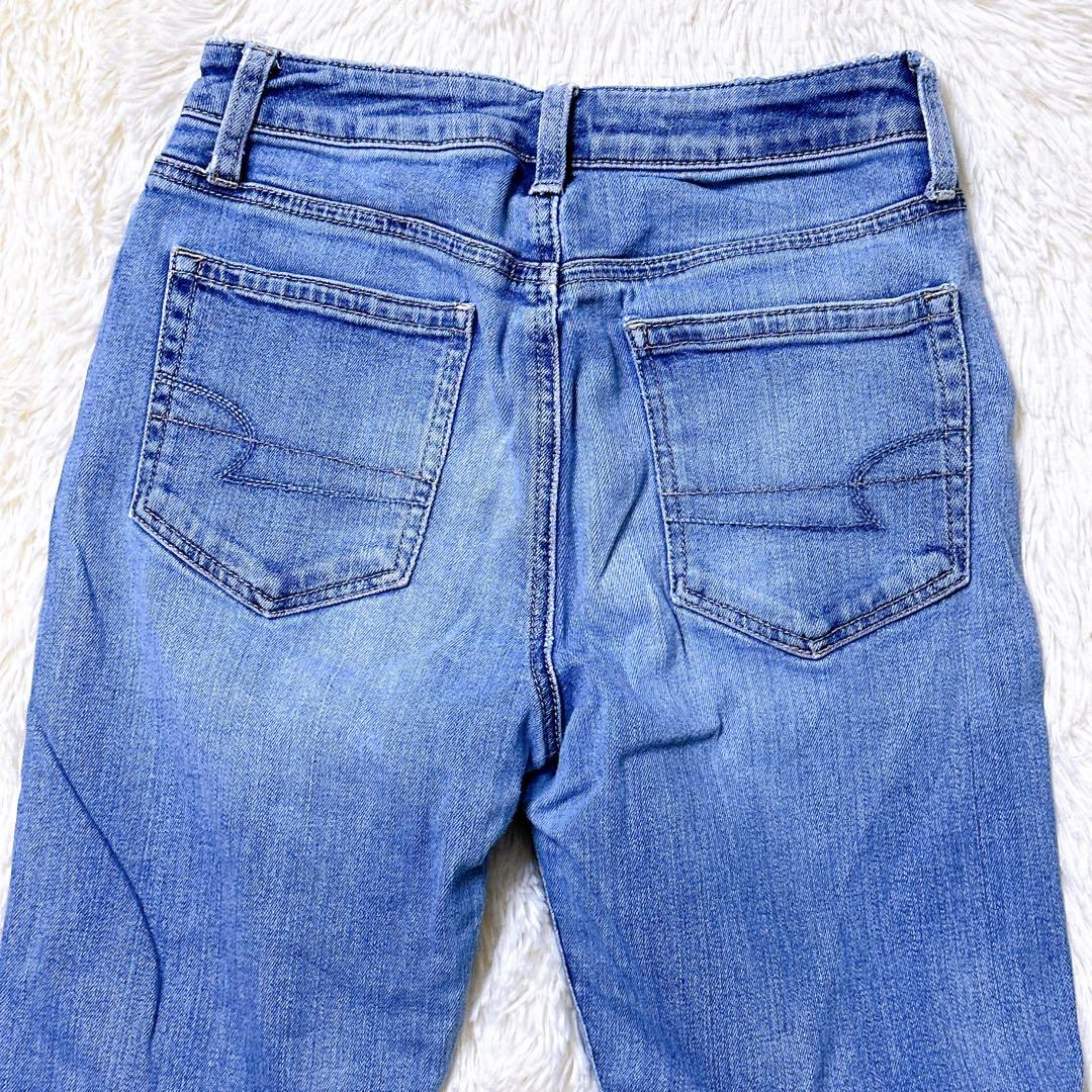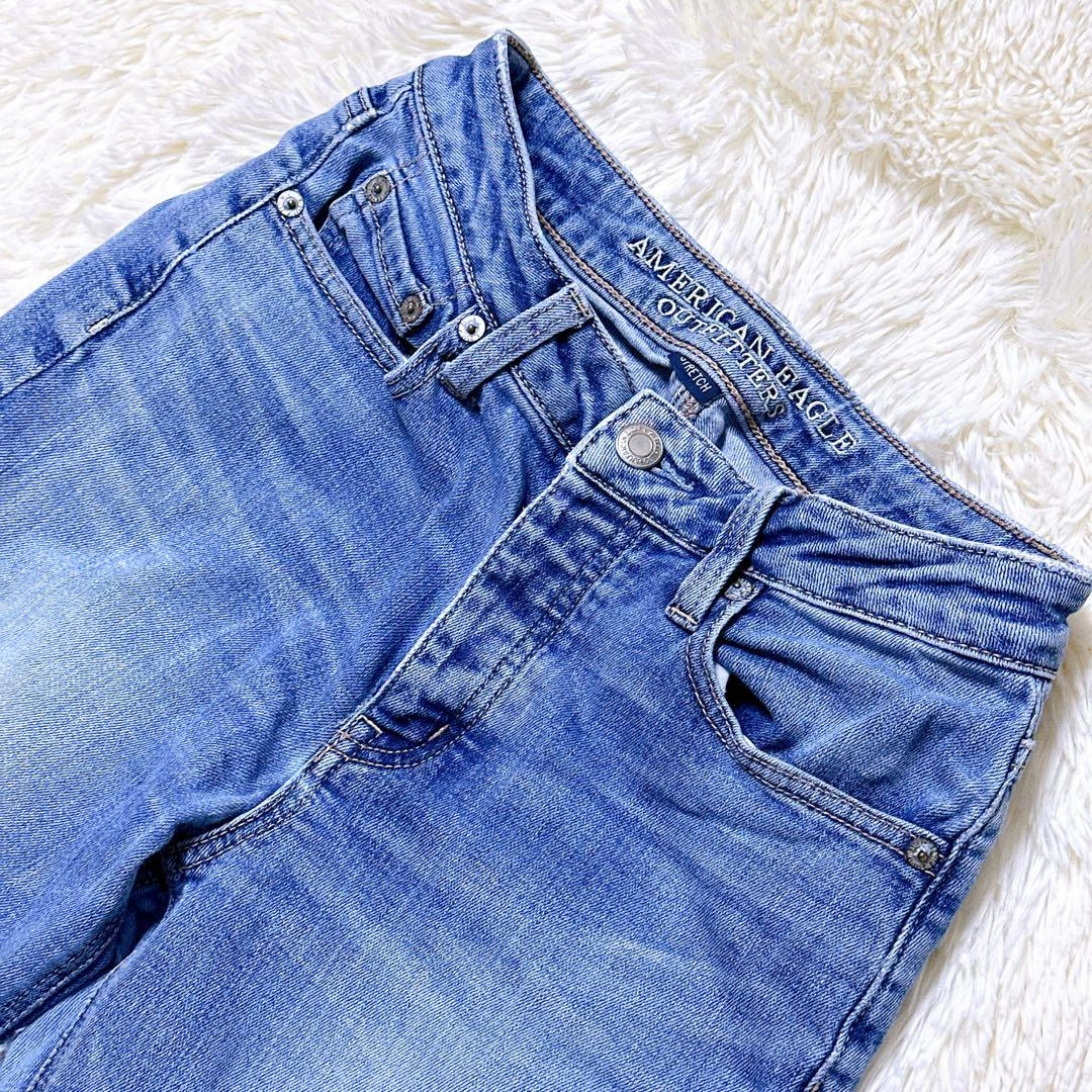 あたたかさAMERICAN EAGLE アメリカンイーグルのライトブルースキニージーンズです。 サイズ:0(Sサイズ相当) ウエスト:34cm 股上:23cm ヒップ:37cm わたり幅:21cm 股下:61cm すそ幅:13cm ストレッチ素材です。写真にてご確認ください。 ご質問等ありましたら、購入前にお願いいたします。 万一不備がありましたら、返品対応させていただきますので、ご連絡ください。 デニムカラー···ライトブルー ウエスト···レギュラーウエスト 汚れ・破れ・臭いなど···なし