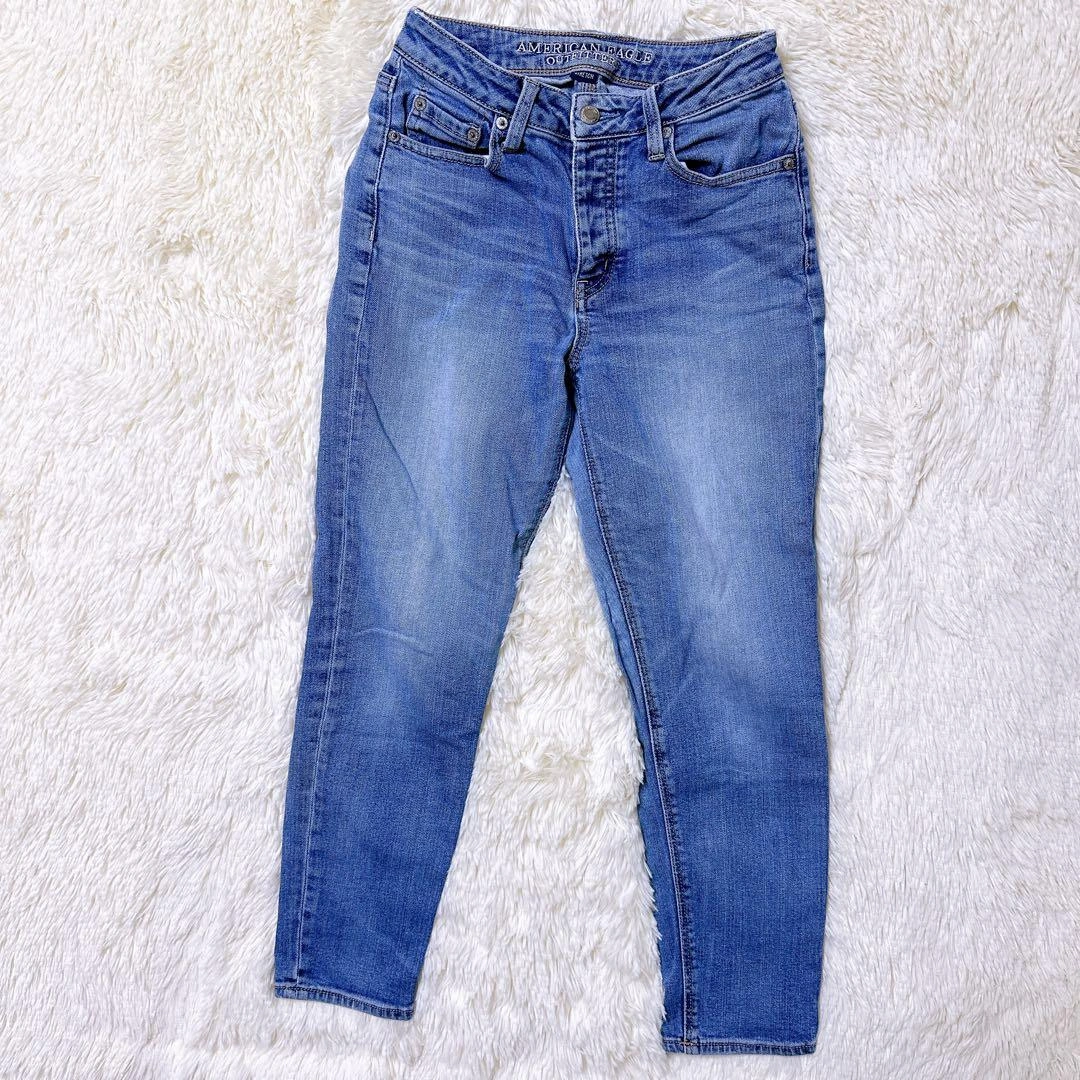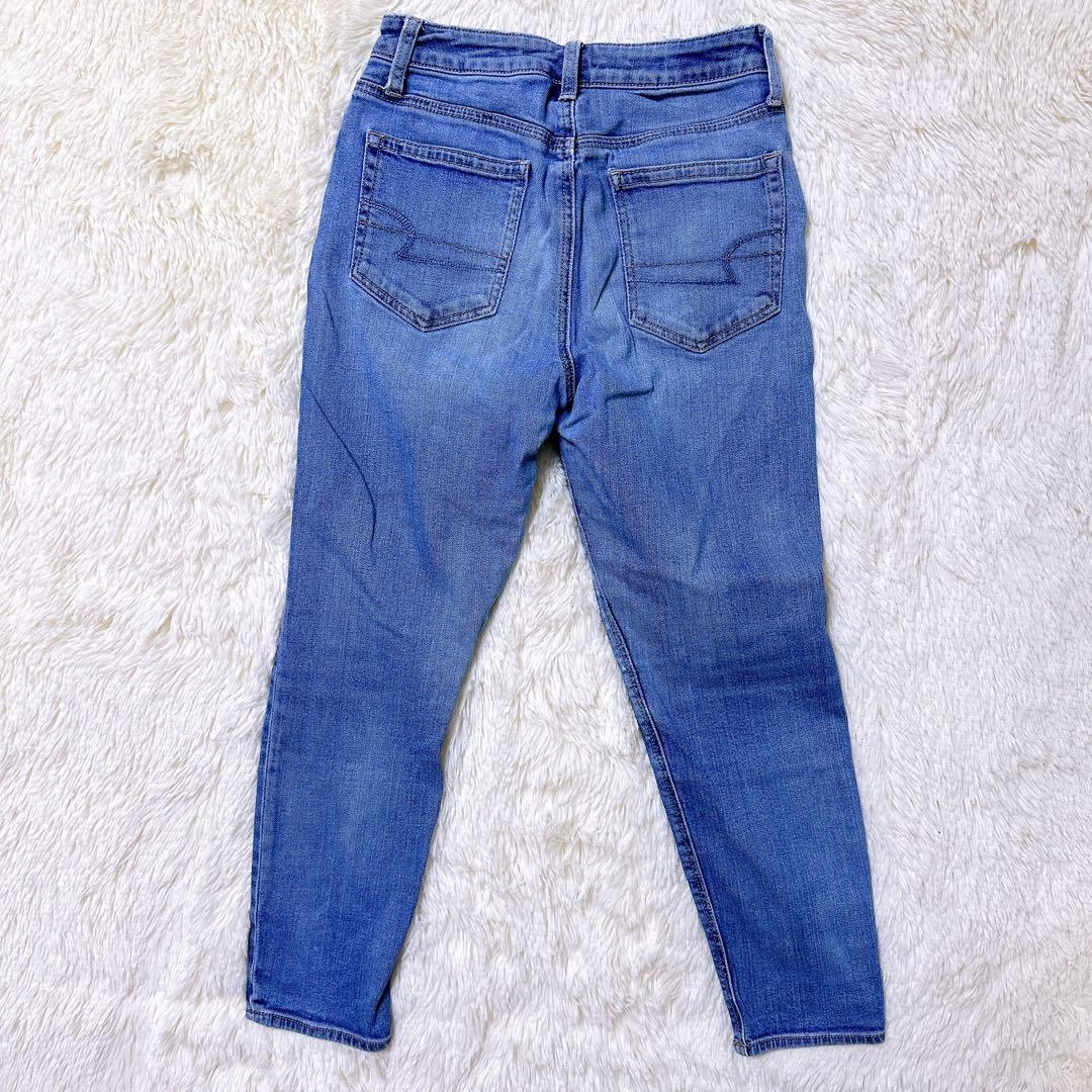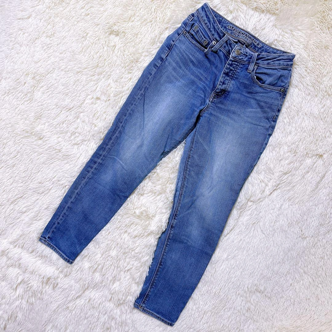 あたたかさAMERICAN EAGLE アメリカンイーグルのライトブルースキニージーンズです。 サイズ:0(Sサイズ相当) ウエスト:34cm 股上:23cm ヒップ:37cm わたり幅:21cm 股下:61cm すそ幅:13cm ストレッチ素材です。写真にてご確認ください。 ご質問等ありましたら、購入前にお願いいたします。 万一不備がありましたら、返品対応させていただきますので、ご連絡ください。 デニムカラー···ライトブルー ウエスト···レギュラーウエスト 汚れ・破れ・臭いなど···なし