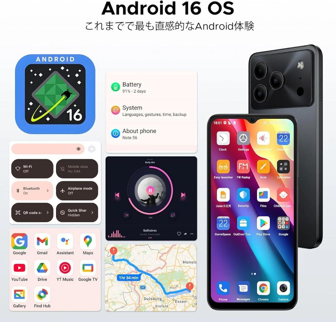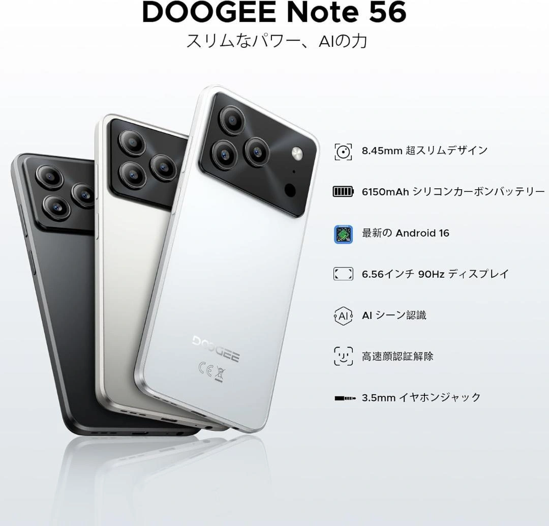 Android 16 スマホ DOOGEE Note56 SIMフリー ブラック