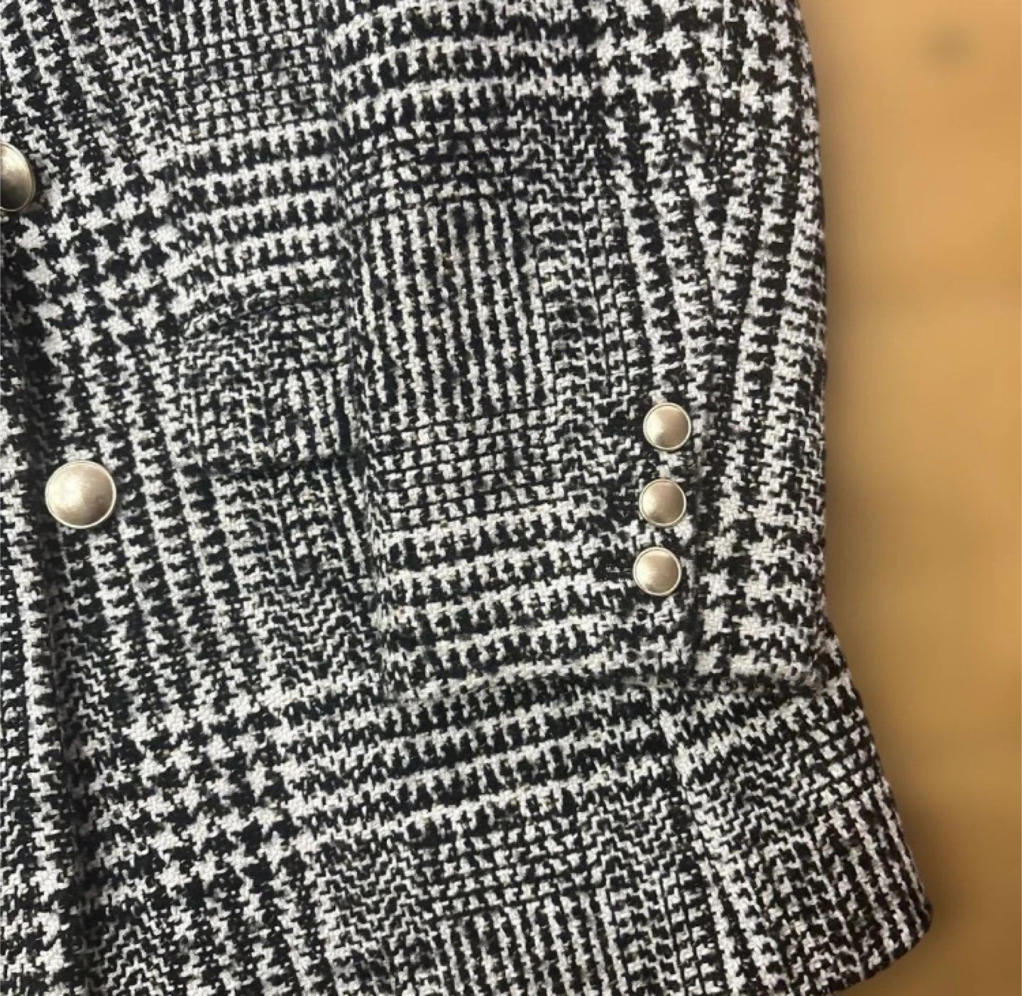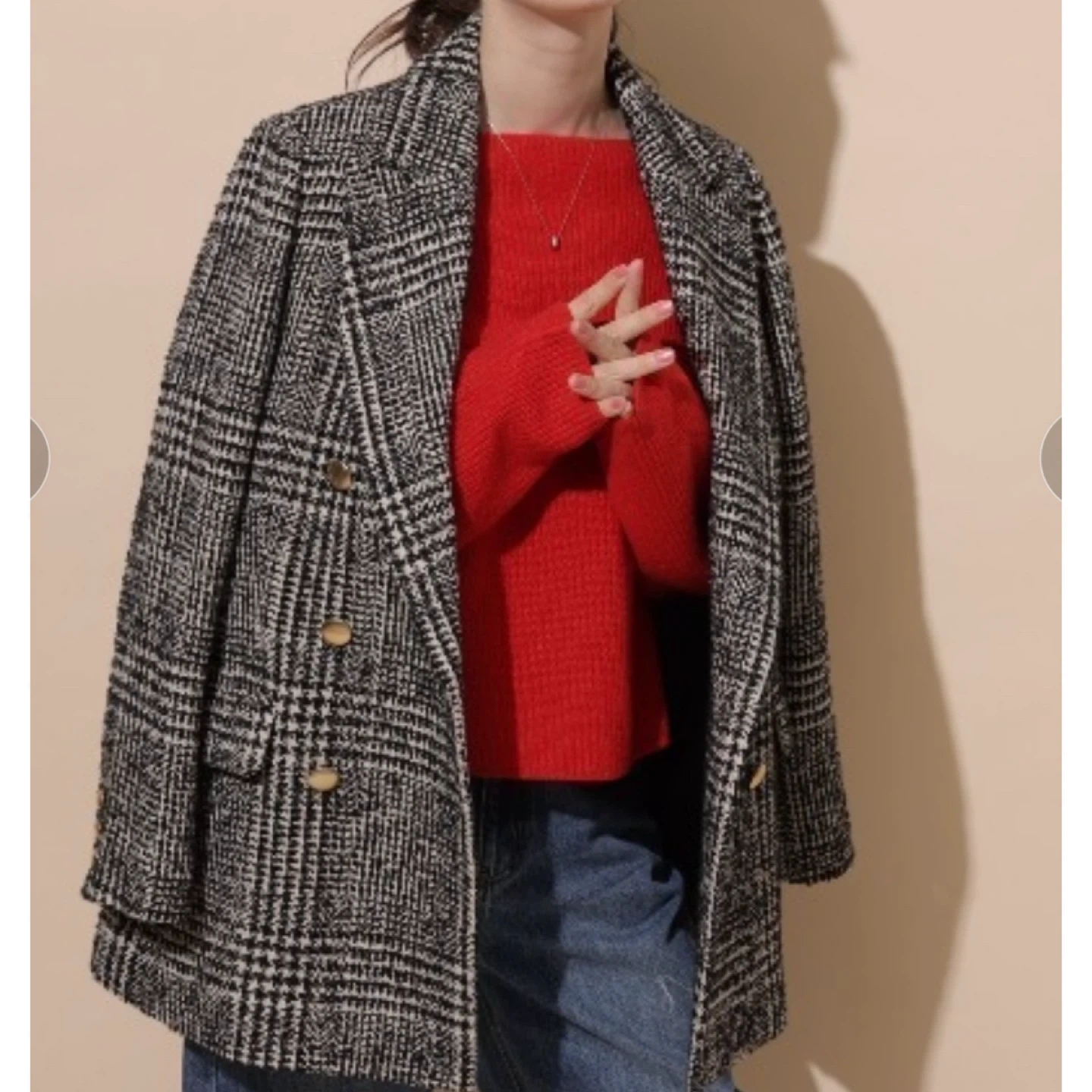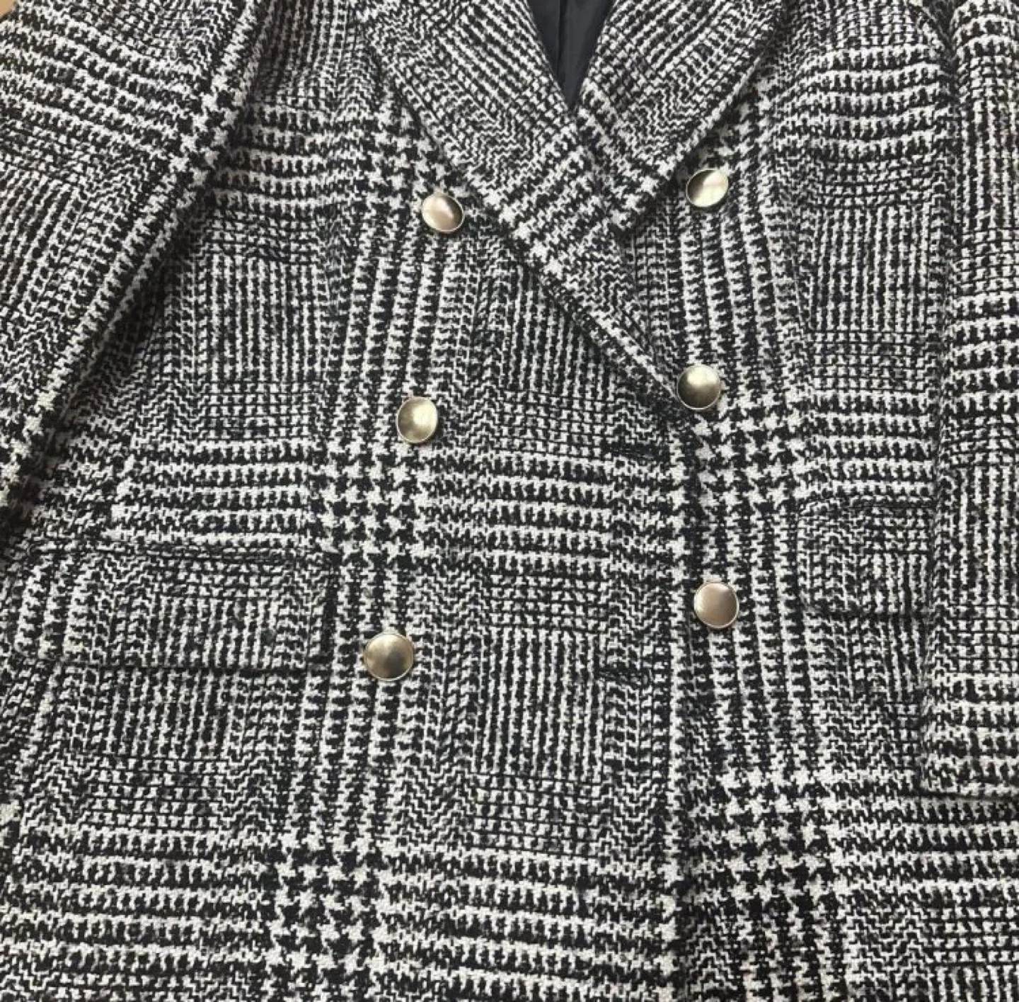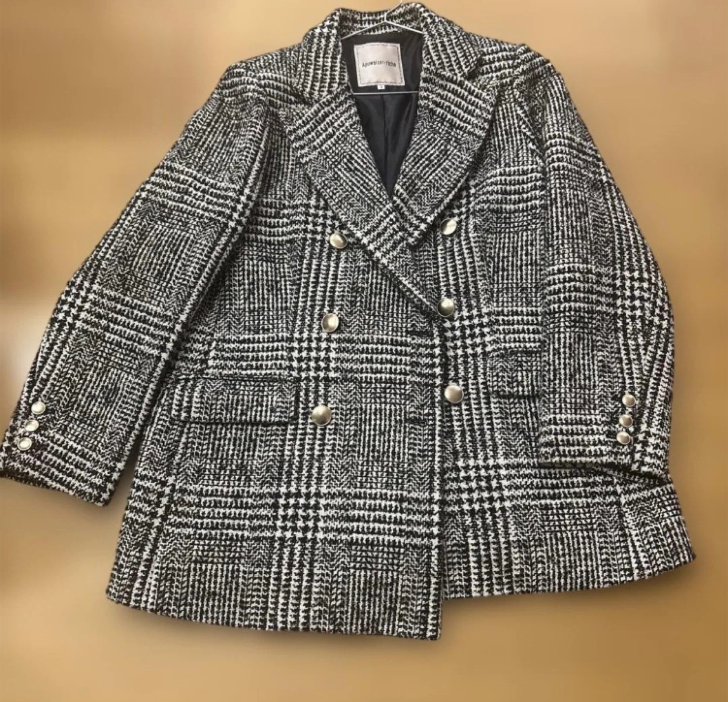 【Apuweiser-riche】チェックチェスターコート ダブルブレストのチェック柄ジャケット、ゴールドボタン付き。ツイードコート アプワイザーリッシェ サイズ2 数回着用 定価7万位 - 色: ブラック・ホワイト・ベージュのチェック柄 - スタイル: ダブルブレスト - ボタン: ゴールドのボタン - 素材: ツイード風の生地 - デザイン: クラシックなテーラードツイードジャケットコート ご覧いただきありがとうございます。 サイズが合わないためお譲りいたします。 中古品であることご了承ください。