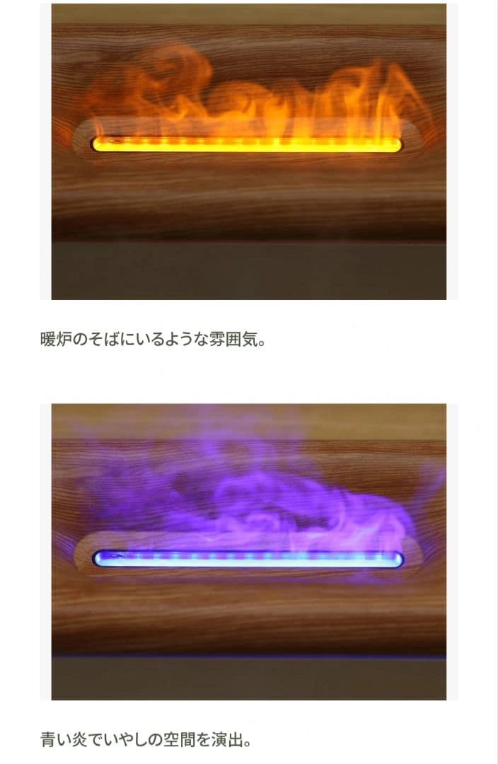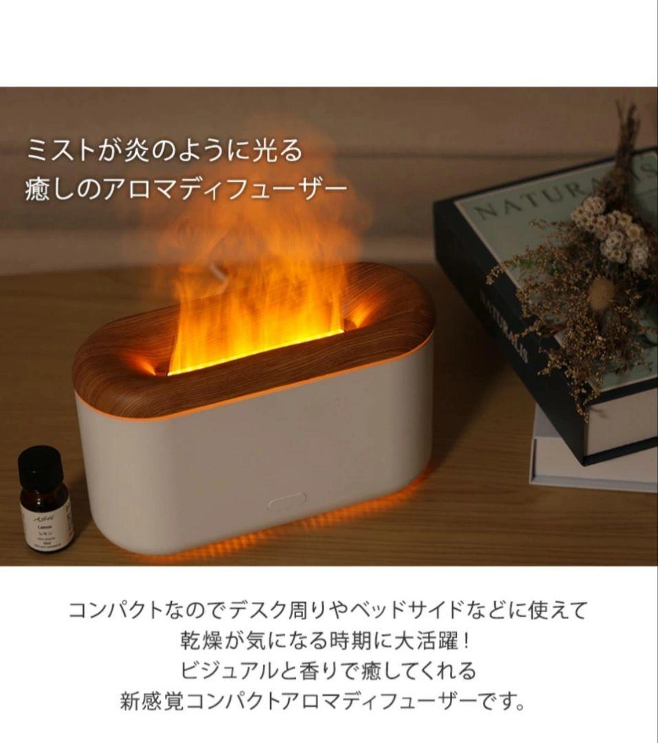 超音波ミスト機能搭載のアロマディフューザーです。LEDライトで空間を演出します。 ・カラー ブラック - モデル名: Aromist flame - サイズ: 約200×80×125mm - 重量: 約380g - 電源: DC5V - 消費電力: 約5.5W - 水タンク容量: 300ml - ミスト量: 約20ml/h - LEDライト: 青色・紫色の2色切替 - 安全装置: 水切れ自動OFF機能 数回しか使用していないので目立つダメージのない美品です。 説明書、箱無しです。 炎 焚火 焚き火 ご希望の方はお気軽にご連絡ください。