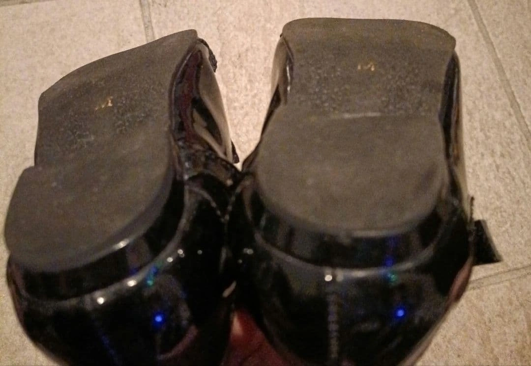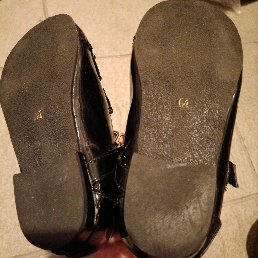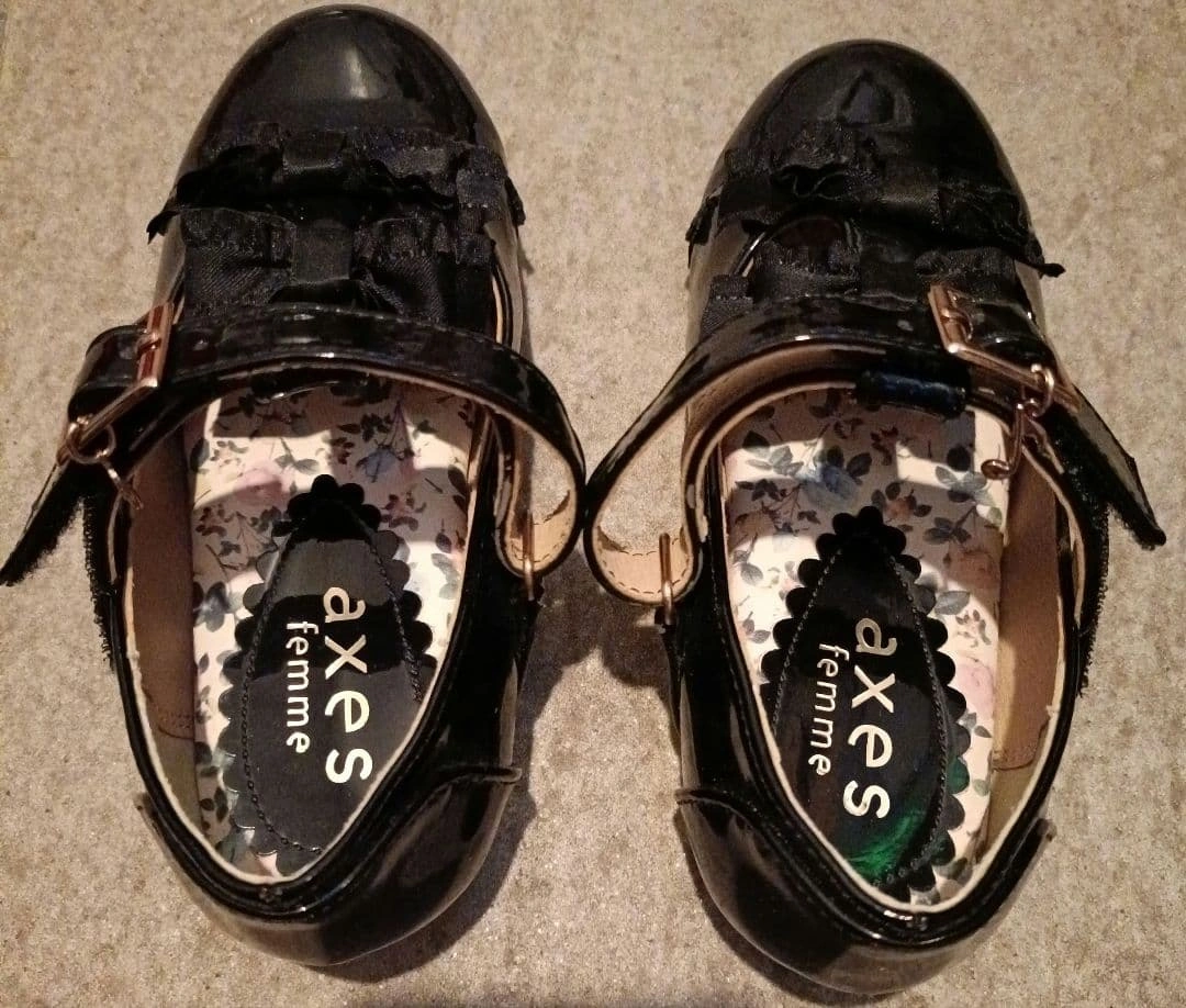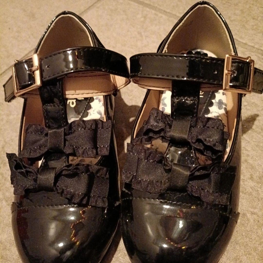 リボン付きの黒い光沢のある合成皮革で、フォーマルなシーンにも 合うかと思います。 花柄のインソールが特徴です。 靴底に使用感がありますが、全体的に良好な状態です。卒園式や入学式に数回使用しました。 - ブランド: axes femme - 色: 黒 - デザイン: リボン付き - 素材: 光沢のある合成皮革 - 靴底の状態: 使用感あり - インソールデザイン: 花柄 ご覧いただきありがとうございます。