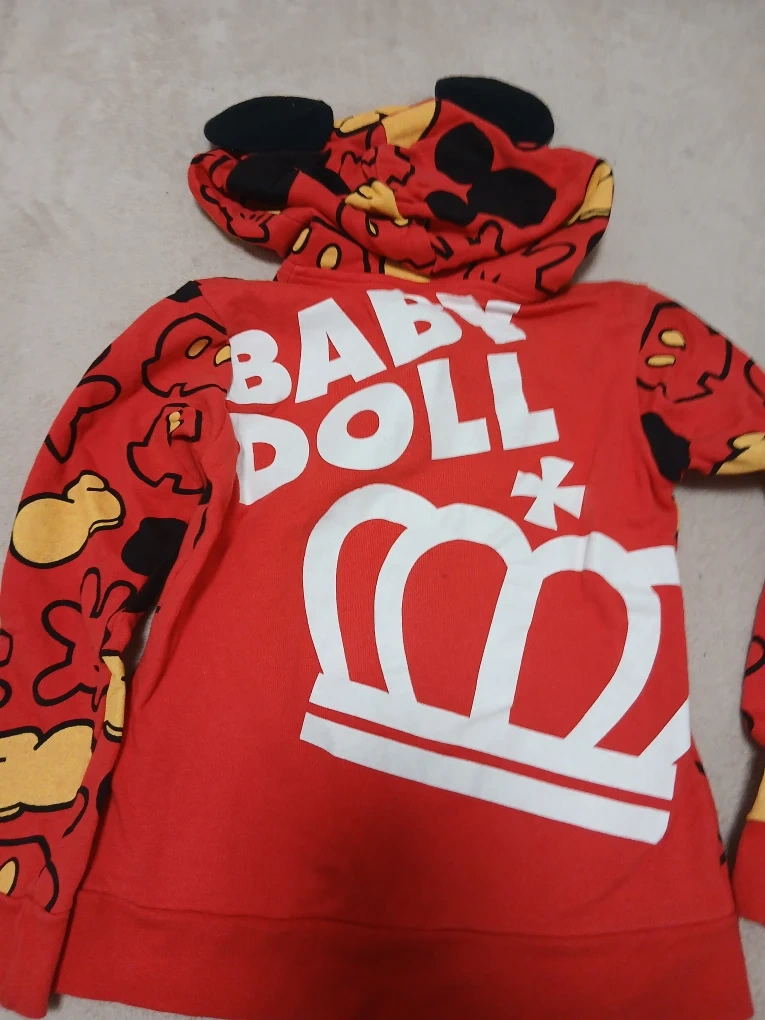 ベビードール赤トレーナ記生地ミッキーマウス耳あり 青モココモコ生地耳付き 派手な服好きには良いかと思います(*^^*) 商品状態・室内保管 ブランド:ベビードール 素材:トレーナー生地、モコモコ生地 サイズ 赤上120下110 青上120下110 中古品であるということをご了承の上、ご購入ください。 ご不明点等ございましたらご連絡ください。
