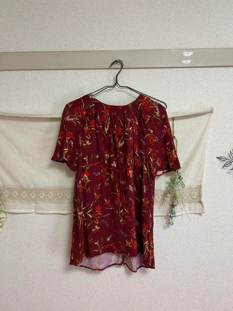 昭和レトロ 一点もの 白襟ピンクブラウス 花型ボタン 長袖
