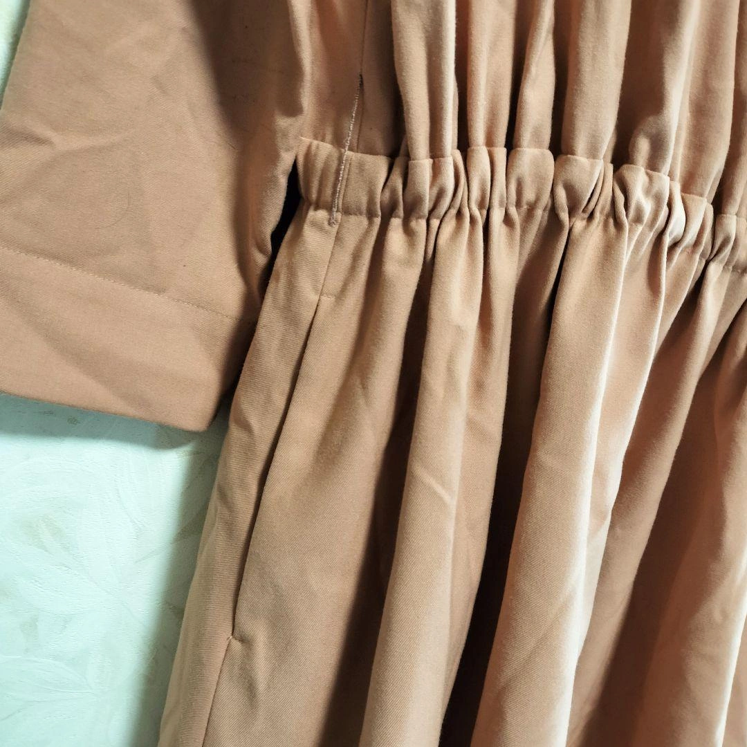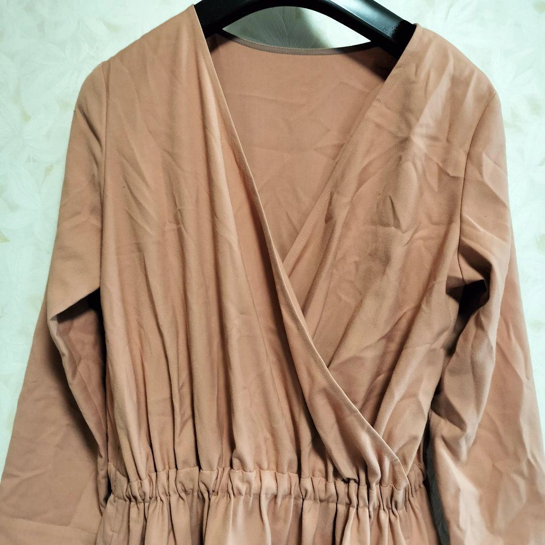 BEAMS LIGHTSのラップデザイン長袖ひざ丈ワンピースです。ウエストはゴム入りで快適な着心地です。 訳ありでお安く出品します。 - 色: ピンク - 袖の長さ: 長袖 - デザイン: ラップデザイン - ウエスト: ゴム入り - 丈: ひざ丈 ※腰にあるリボンのようなものは付属しません。 袖に黒い擦れのような染みがあります。 上品なピンクベージュカラーのカシュクールワンピースです。ウエストゴムで快適に着られ、リボンベルトでスタイルアップも可能です。オンオフ問わず使えると思います。 ブランド: BEAMS LIGHTS カラー: ピンクベージュ サイズ: 36(S〜M相当) 着丈: 約105cm 肩幅: 約38cm 身幅: 約45cm 袖丈: 約49cm 裄丈: 約63cm 素材: 表地 ポリエステル65%、レーヨン31%、ポリウレタン4% 裏地(スカート部分)ポリエステル100% 特徴: カシュクールデザイン、ウエストゴム、日本製 おすすめポイント: ・カシュクール仕様で上品なシルエット ・リボンベルトでスタイルアップ効果 ・オンオフどちらも着用可能な万能デザイン ・日本製で高品質 ご覧いただきありがとうございます。