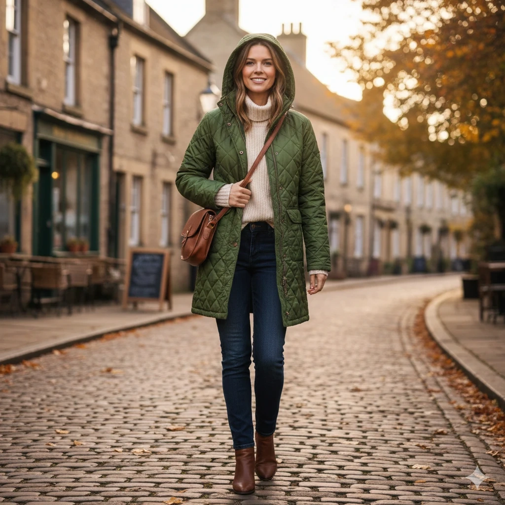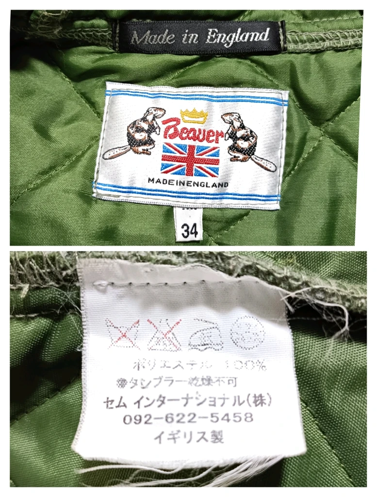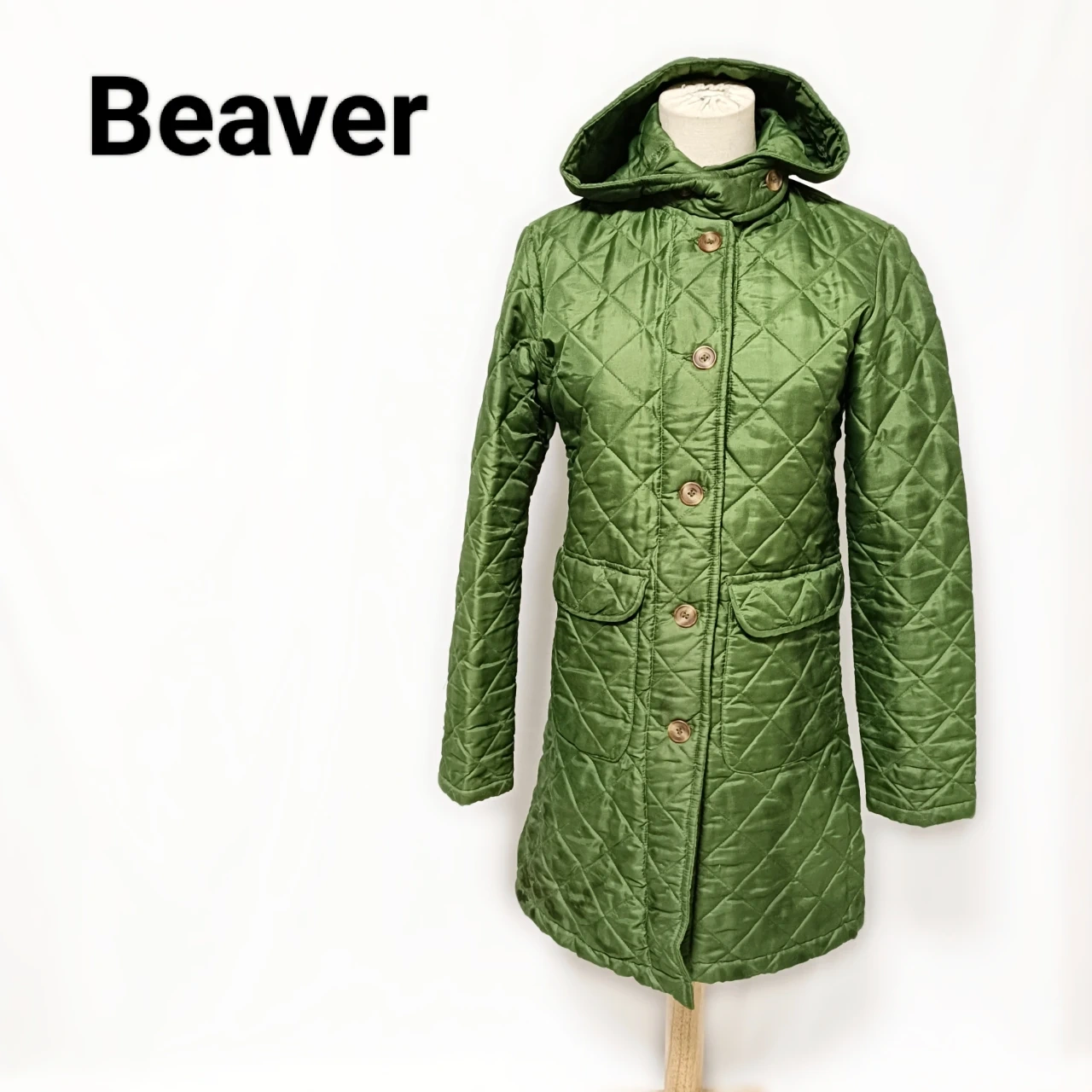 Beaver ビーバー 英国製 キルティングロングコート グリーン 34 フード