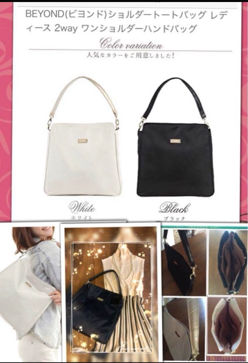 ビヨンドインターナショナル スクエアワンショルダーバッグです。 A4サイズも入り、超軽く丈夫な塩ビナイロン製。 シンプルでスタイリッシュ。 内ポケット、仕切りあり。 持ち手は皮革風型押し。 マグネットホック。 縦31、横33、幅5cm #BeyondInternational #ビヨンドインターナショナル #BeyondFund カラー···ホワイト系 素材···ナイロン カラー···ホワイト ご希望の方はお気軽にご連絡ください。