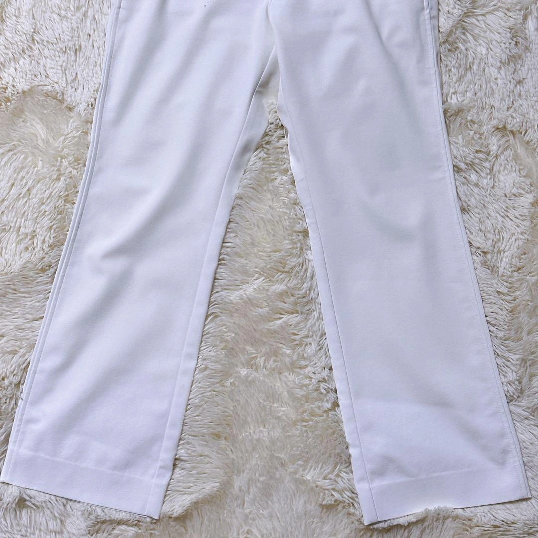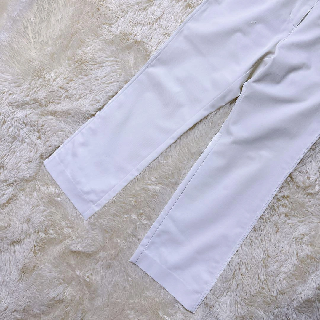 Black&Whiteのホワイトカジュアルパンツです。ハイウエストデザイン。 5枚目の写真に写っている部分に少し毛玉のようなほつれがありますが、汚れはありません。まだまだ着用いただけると思います。 写真にてご確認ください。 平置き寸法 ウェスト:33cm 股上:26cm ヒップ:42cm わたり幅:23cm 股下:63cm すそ幅:20cm 素人寸法のため、若干の誤差はご了承ください。 ウエスト···33cm ヒップ···42cm 股上···26cm 股下···63cm カラー···ホワイト系 柄・デザイン···無地 汚れ・破れ・臭いなど···なし ご希望の方はお気軽にご連絡ください。