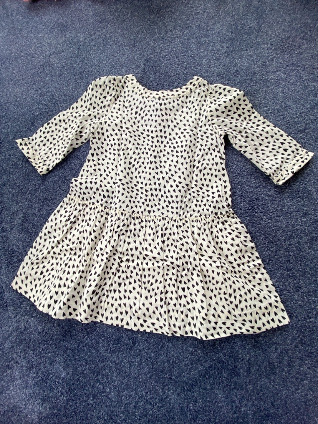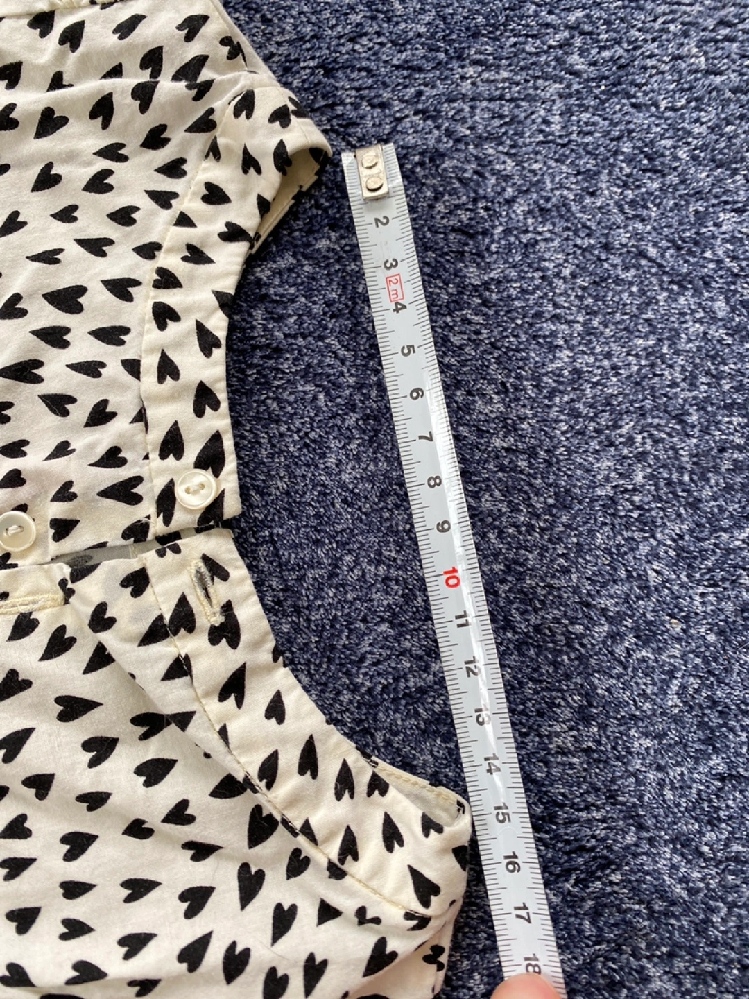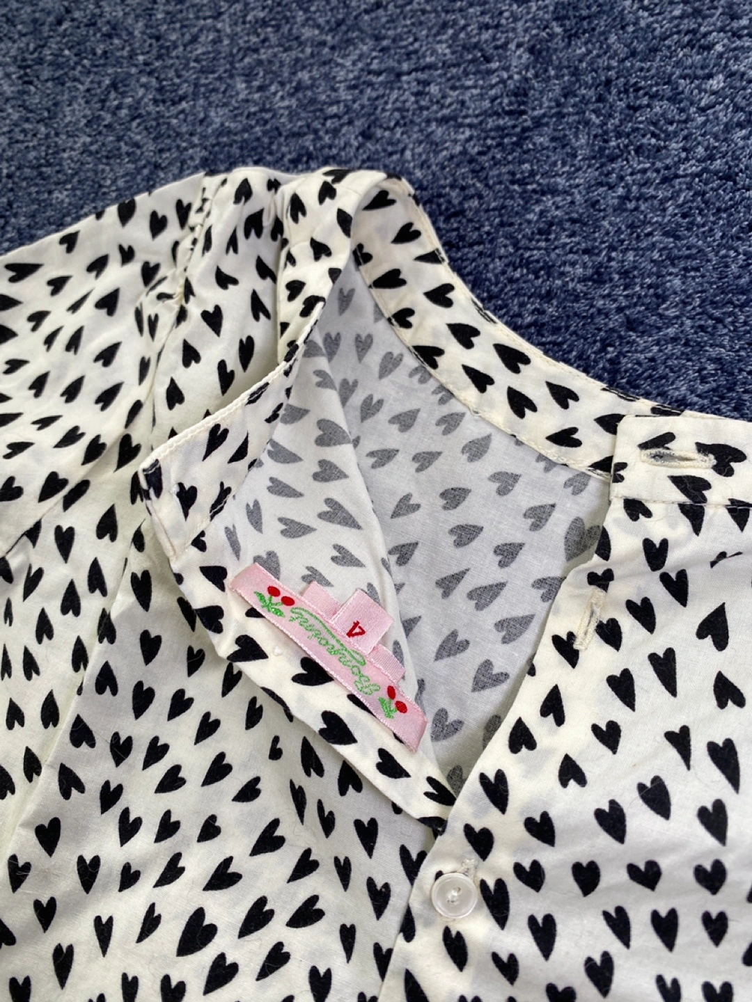 ・カラー:カラー:白、黒(全体的にしろと言うかベージュかもしれません) ・柄:ハート柄 ・サイズ:4 調べたら日本サイズ100~110cmだそうです。 平置き採寸画像参照してください。 ・素材:100% コットン ■ベビー用品まとめ買い希望の方へ まとめ買いでお得な価格に 値下げいたします。 是非コメントより価格ご相談ください。 ※ 服は大半がタグ名前マジックあり。 ※ 古着ですので神経質な方はご遠慮ください。 ■ 受け渡し 基本的に自営なので融通ききます。 まとめ買いであれば近くのアクロスプラザ東神奈川(駐車場2時間無料)までお持ちすることも可能です。