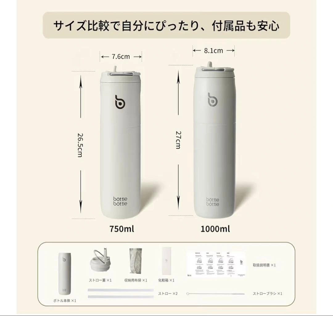 一度しか使っておらず、きれいです。 定価:2480円 1000mlのホワイトボトル、ストロー付きキャップで便利です。 - ブランド: bottle bottle - 容量: 1000ml - 色: ホワイト - サイズ: 高さ27cm, 幅8.1cm - 付属品: ストロー付きキャップ 取引場所: 阿佐ヶ谷駅、下井草駅、西新宿駅可能 ※現金でお願い致します。