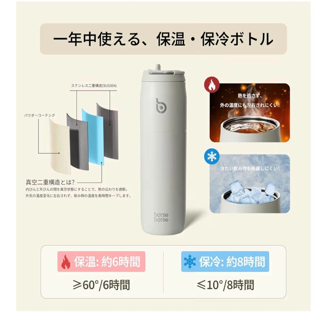bottle bottle 水筒 1000ml ライトグレー タンブラー