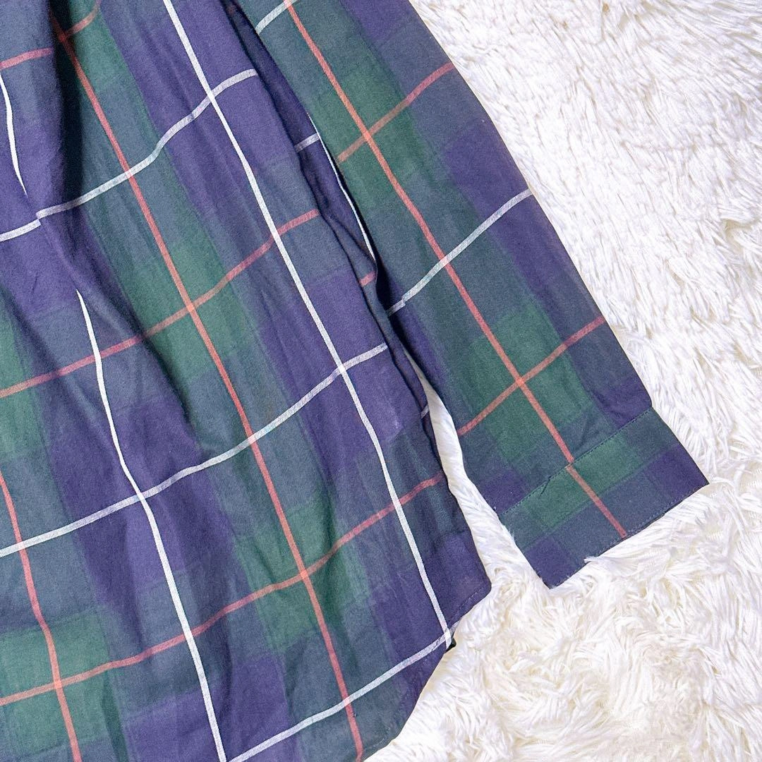 あたたかさBRICK HOUSEの緑と紫のチェック柄長袖シャツです。カジュアルスタイルに。 写真にてご確認ください。 着丈:67cm 身幅:53cm 肩幅:39cm 袖丈:59cm 素人寸法のため、若干の誤差はご了承ください。 肩幅···39cm 身幅···53cm 袖丈···59cm 着丈···67cm カラー···グリーン系 カラー/ネック···レギュラーカラー 透け感···透け感なし 季節···秋冬 汚れ・破れ・臭いなど···なし ご希望の方はお気軽にご連絡ください。