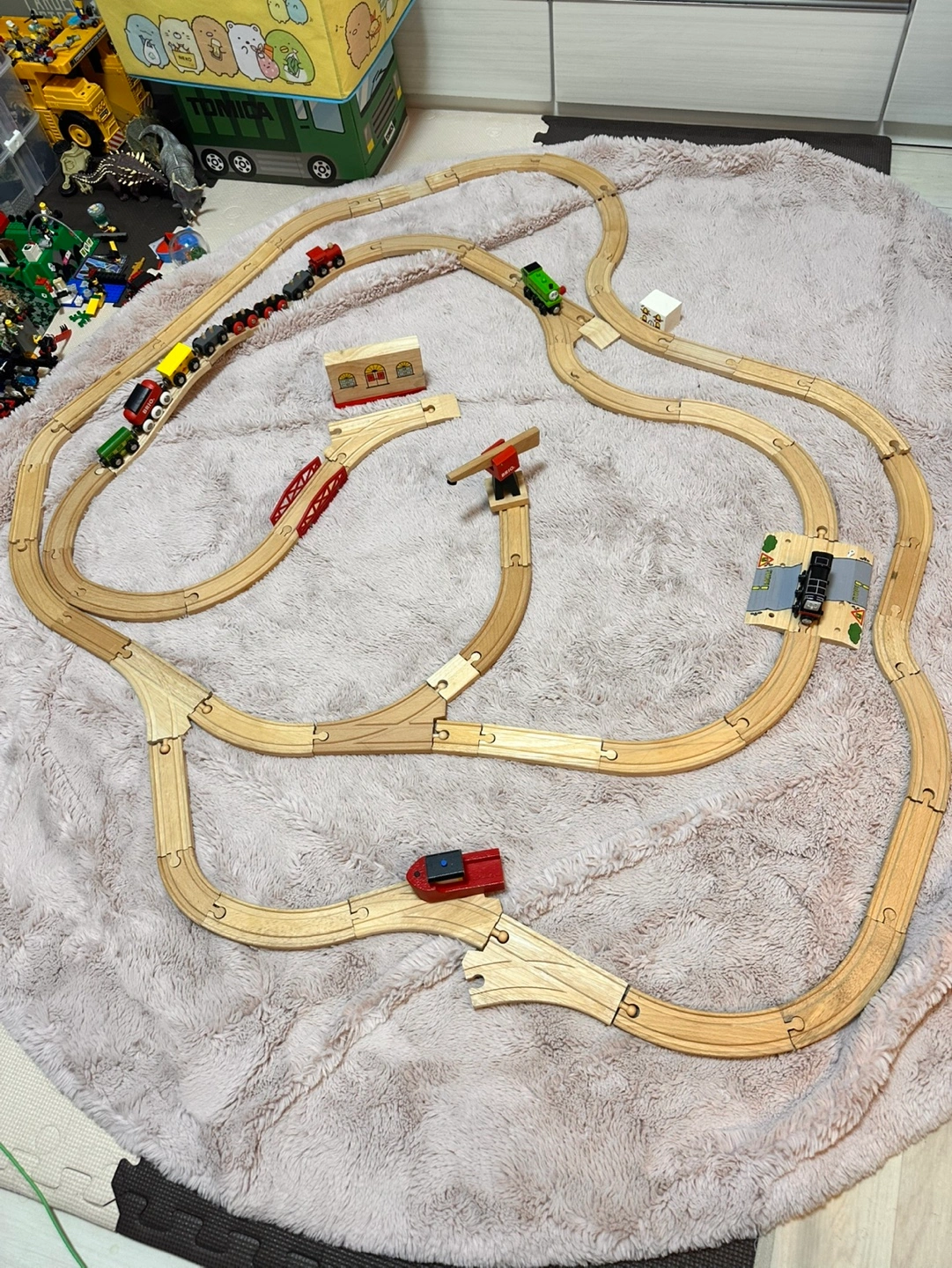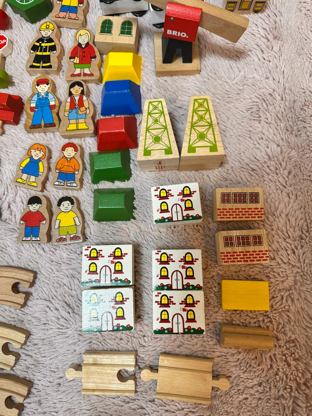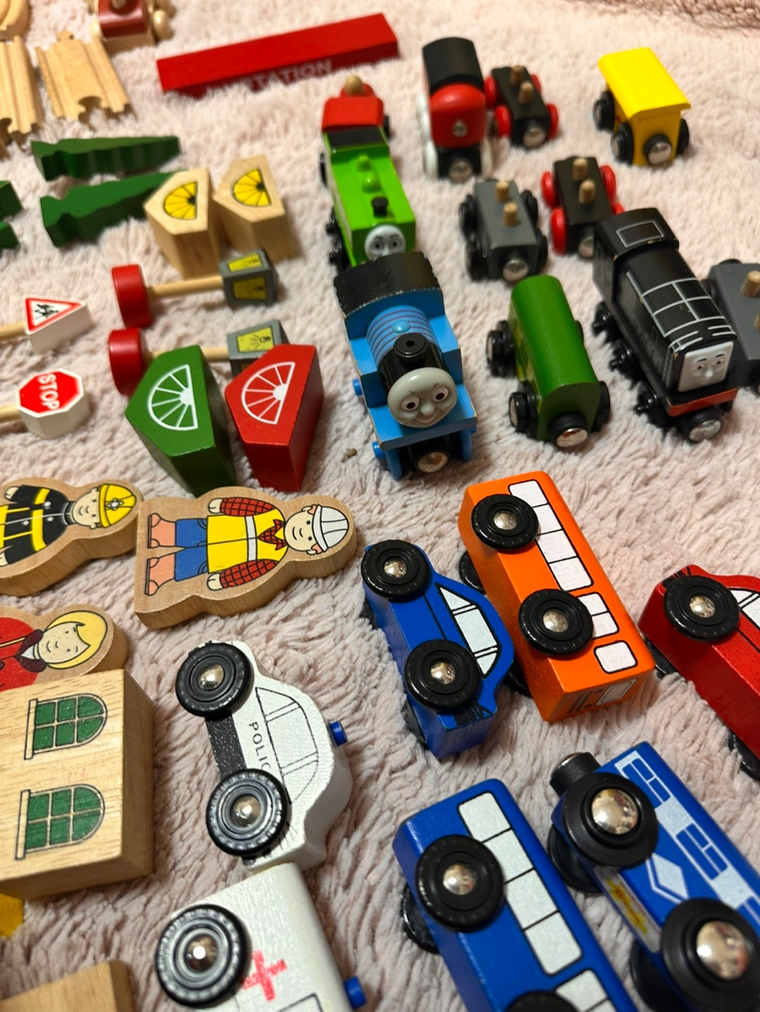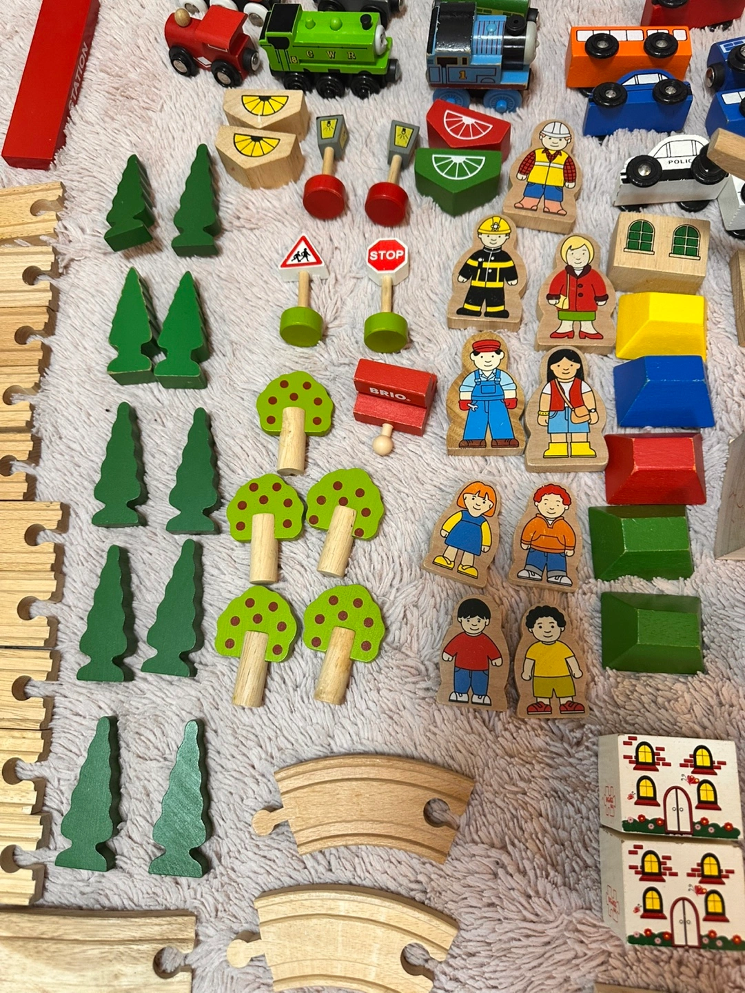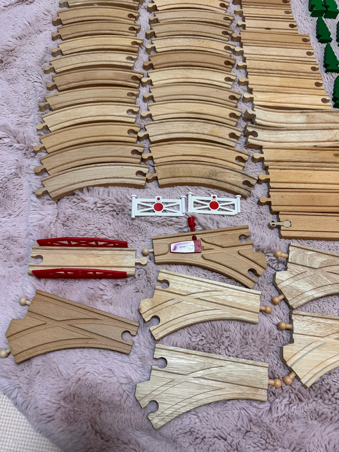 ご覧頂きありがとうございます♪ たくさん使うレールをはじめ、 木や人、列車、トーマス、 木製列車、クレーンなど 大量セットです! これさえあれば他に買い足す必要はないと思われるくらいの量があります。 130パーツ以上あるかと思います。 (動物の列車はブリオではありません) 画像12の柵の一部が割れてしまっている箇所があります。 その他、子供が使用しておりましたので 小傷はあります。中古とご理解いただける方のみご購入ください。 他のサイトにも出品しておりますので早い者勝ちです!